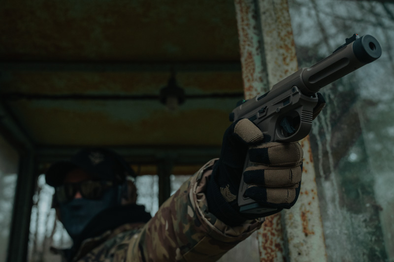 Первое, что выделяет AAP-01 — его внешний вид. Он вдохновлен спортивными пистолетами Ruger, но выполнен в более футуристическом стиле. Несмотря на необычную форму — пистолет отлично лежит в руке. А благодаря облегченному полимерному корпусу и эргономичному углу рукояти— снижается усталость при длительной стрельбе.