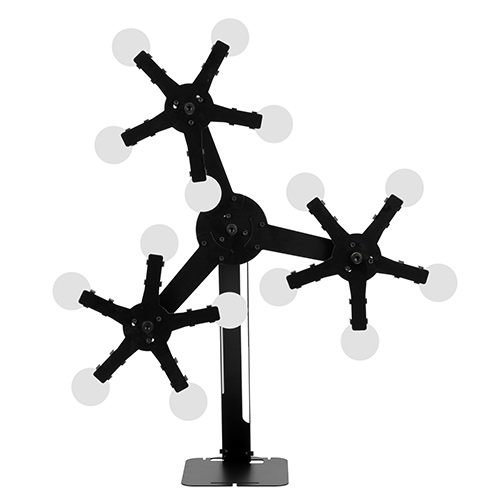 Что это: T‑образный модуль с магнитными тарелками. При попадании тарелки «срываются» с магнита, конструкция раскачивается — получается динамическая «карусель».