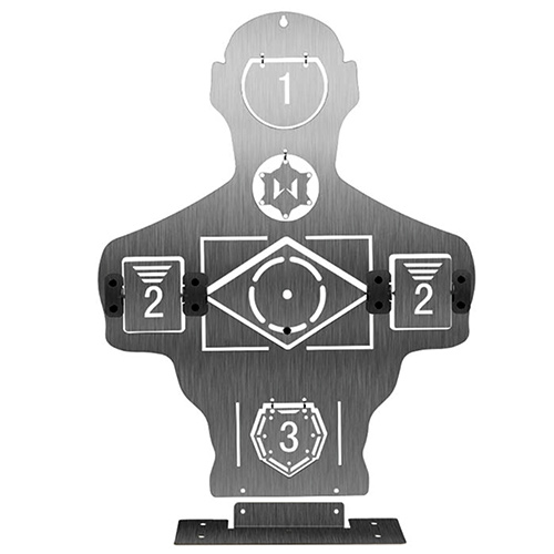Что это: полуторсо из нержавеющей стали с выделенными зонами и четким контуром силуэта — удобна для отработки прицельной и скоростной стрельбы. Плоский профиль легко читается на дистанции. По зарубежным данным, модель выполнена из нержавеющей стали, ряд версий имеет пронумерованные зоны; база предусматривает крепление к поверхности.