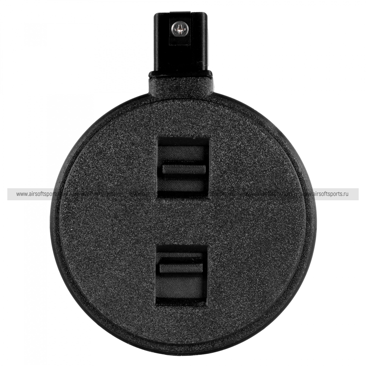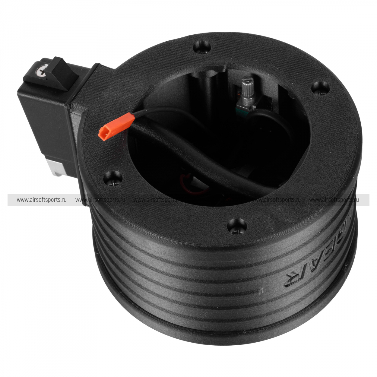 Бубен Predator (BullGear) для АК, автоматическая версия — это надежный и простой в обслуживании магазин-барабан с емкостью около 2800 шаров (без учета батарейки), рассчитанный на интенсивную стрельбу и стабильную подачу. Рекомендуемое питание — LiPo 7.4 В для скорострельности до 2500 шаров в минуту. Конструкция построена на чистой механике без сложной и «секретной» электроники: здесь нет микрофонов, датчиков давления, лазеров, светодиодов, магнитов и любых элементов, которые нужно подключать. Принцип работы максимально понятен и предсказуем: вы стреляете — включается подача; не стреляете — механизм останавливается, а когда шары не идут, питание на мотор не подается, что экономит заряд и ресурс. В новой версии отсутствует большая пружина довзвода, которую ставили раньше, что снижает нагрузку и упрощает конструкцию. Для точной настройки установлен регулятор скорости и мощности, помогающий устранить ситуации с пережатием нозла и обеспечить корректную подачу на разных конфигурациях привода. Предусмотрена кнопка полного выключения для оперативного обесточивания и безопасного хранения. Питание осуществляется через разъем JST, совместимый с компактными LiPo 7.4 В; аккумулятора емкостью 300 mAh хватает примерно на 20 000 выстрелов (±), что делает Predator удобным решением для долгих игр без частых подзарядок.