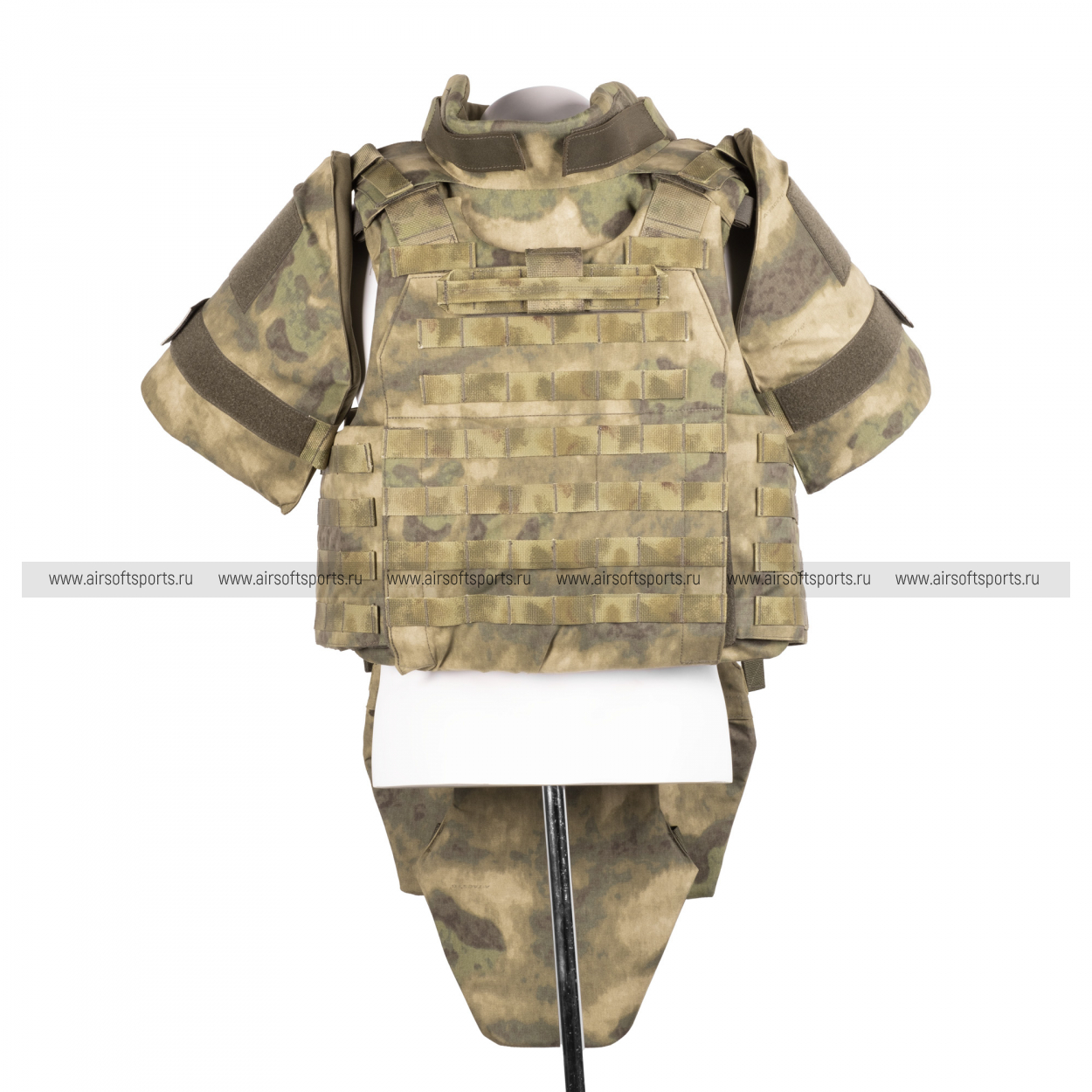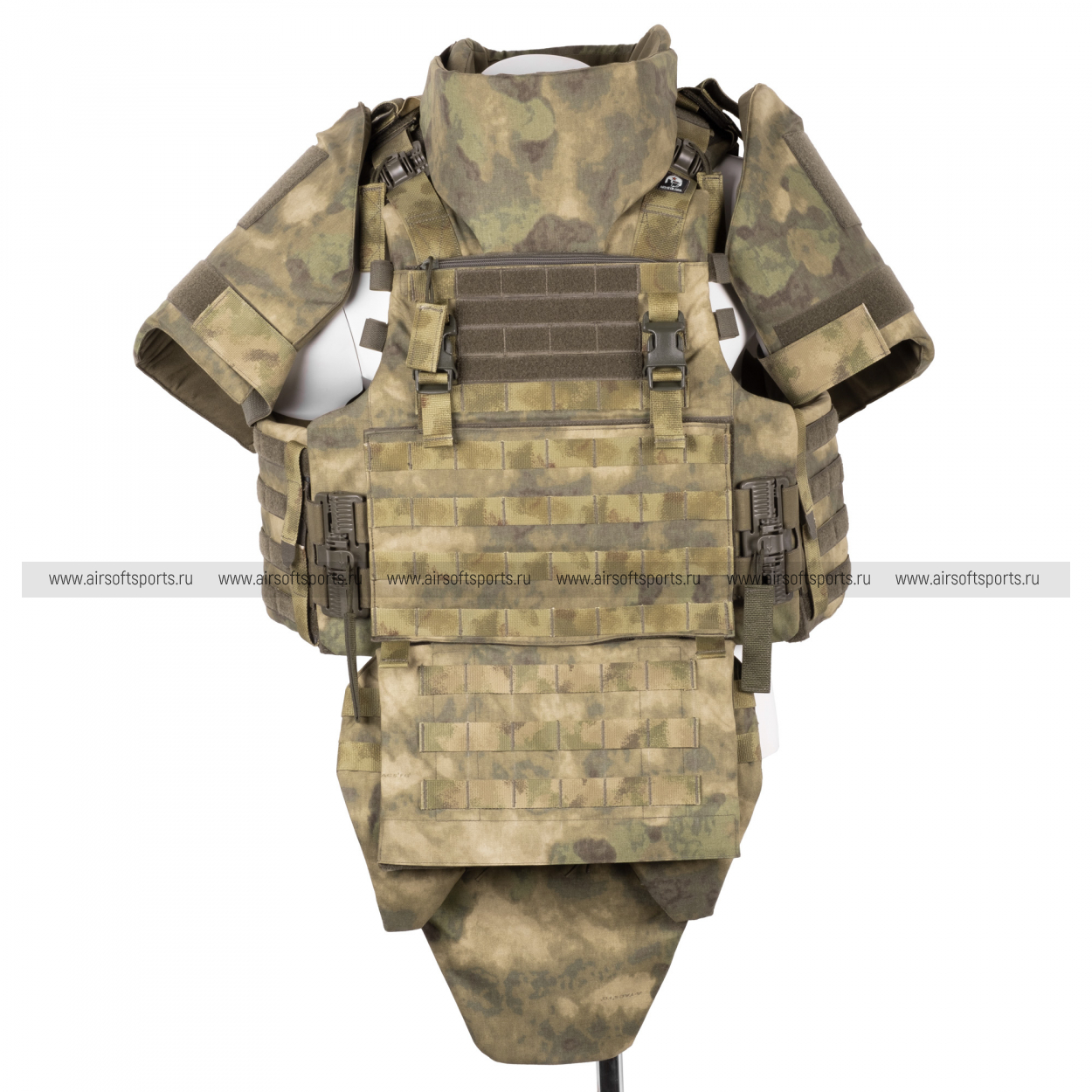 Напашник крепится на велкро, состоит из трёх сегментов с системой MOLLE; в каждый сегмент можно установить мягкую баллистику.