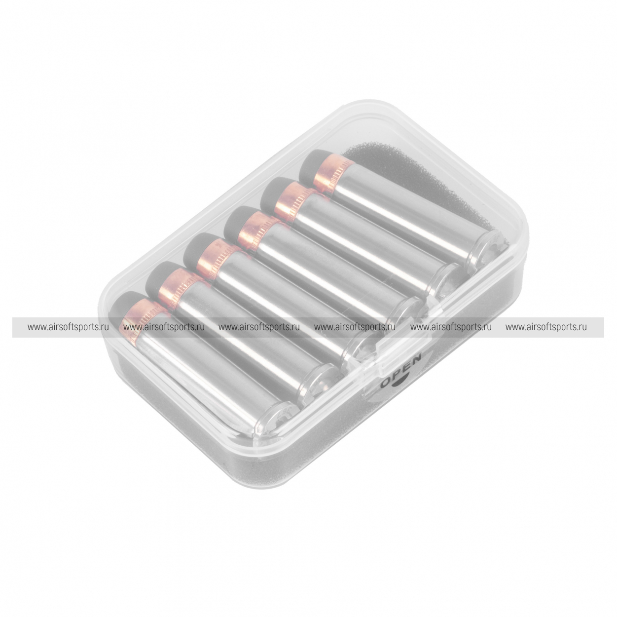 Набор гильз ARES для револьвера — это надежный и практичный комплект из шести сменных «патронов», разработанных специально для страйкбольных револьверов соответствующей линейки ARES. Каждая гильза повторяет форму и ощущения от настоящей, обеспечивая реалистичную зарядку барабана, уверенную фиксацию шарика 6 мм и стабильную подачу при каждом выстреле. Прочный металлический корпус с долговечной полимерной вставкой выдерживает интенсивные тренировки и активную игру, а уплотнительное кольцо надежно удерживает шар, снижая риск выпадания и обеспечивая предсказуемую скорость. Гильзы легко заряжаются и извлекаются стандартным экстрактором, не требуя специальных навыков или инструментов, что делает их удобным расходником как на хроне, так и на площадке. Комплект из 6 штук идеально подходит для замены утерянных или изношенных гильз, расширения боекомплекта, быстрых перезарядок и поддержания максимального реализма в игре. Перед покупкой рекомендуется сверить совместимость с конкретной моделью вашего револьвера ARES.