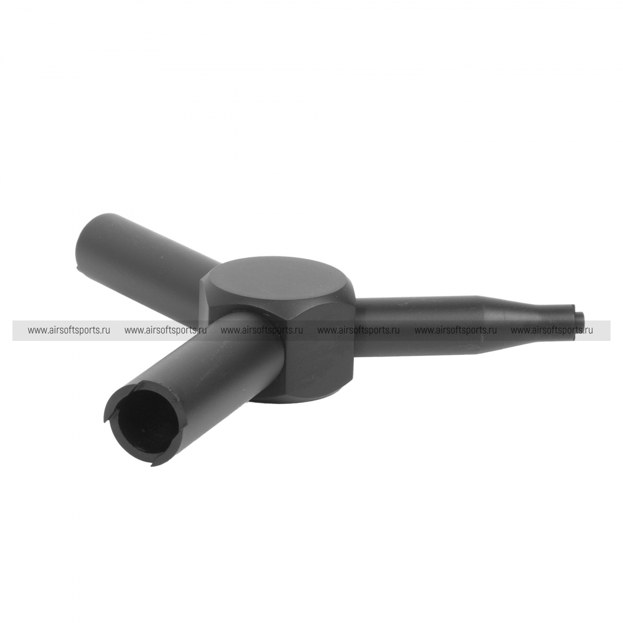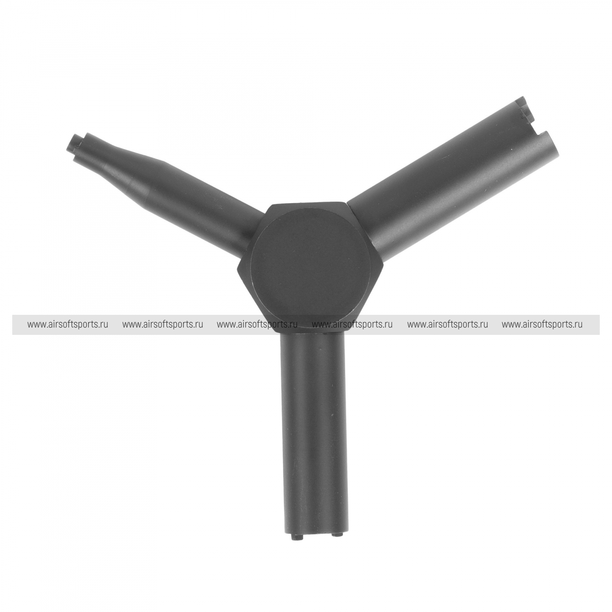 Ключ для газового оружия 3-в-1 — компактный универсальный инструмент для обслуживания и аккуратной работы с клапанами магазинов газовых страйкбольных пистолетов и карабинов (Green Gas/CO2). В одном корпусе объединены три рабочих профиля для отворачивания/затяжки заправочных и выпускных клапанов и сопутствующих узлов, что снижает риск повреждения шлицов и уплотнений по сравнению с подручными средствами. Прочный износостойкий металл с антикоррозийным покрытием, насечка для надежного хвата и удобная форма позволяют уверенно работать даже в перчатках, а компактные габариты облегчают повседневное ношение в мастерском наборе или подсумке. Подходит к большинству распространенных стандартов клапанов (WE, TM, KJW и др.), помогая выполнять регулярную профилактику, замену O-рингов и устранение протечек. Рекомендуется использовать по назначению, без избыточной затяжки, соблюдая требования техники безопасности и местного законодательства.
