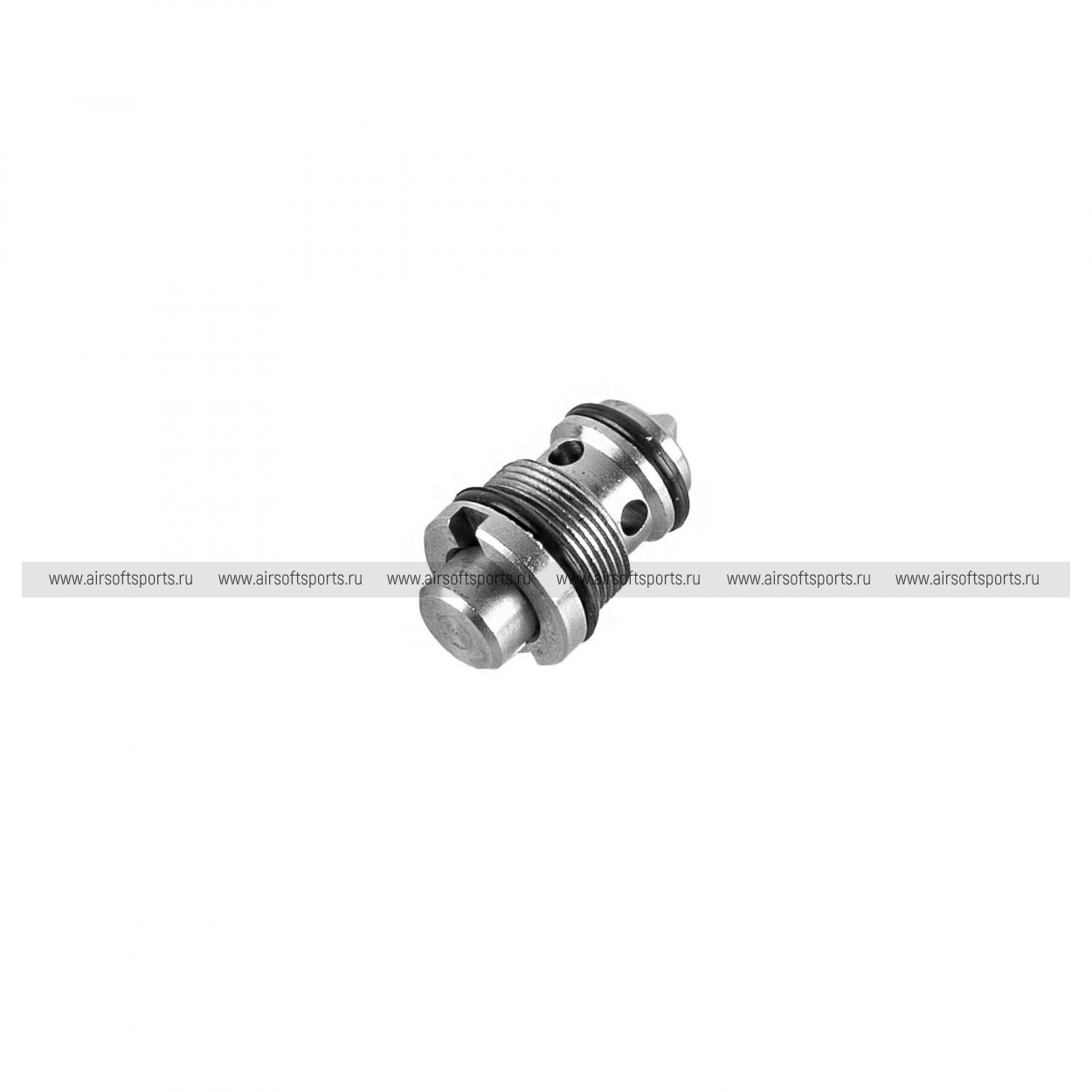 Эта деталь критически важна для стабильной работы газовой системы винтовки при использовании CO2, так как именно она отвечает за дозированный выпуск газа для совершения выстрела и работы автоматики.