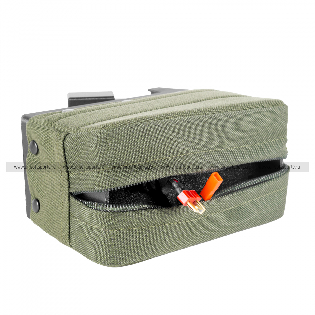 — Отсек под основную батарею, питающую пулемёт, есть углубление под малую; по высоте запас благодаря чехлу.