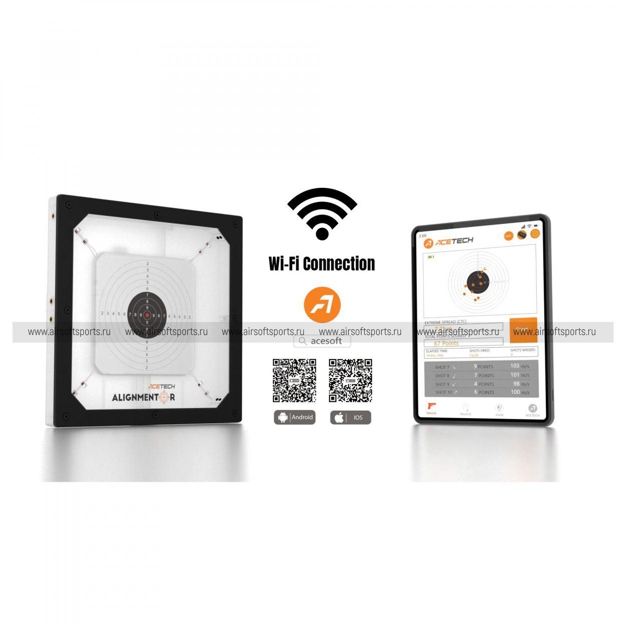 Alignmentor также подойдет тем, кто хочет не просто стрелять, а анализировать свои результаты. Приложение сохраняет статистику, показывает группировку выстрелов и помогает отслеживать прогресс. При использовании вместе с Bluetooth-трассерами ACETECH, например серии Bifrost BT, система позволяет одновременно видеть на экране и точку попадания, и параметры выстрела, включая скорость и энергию.