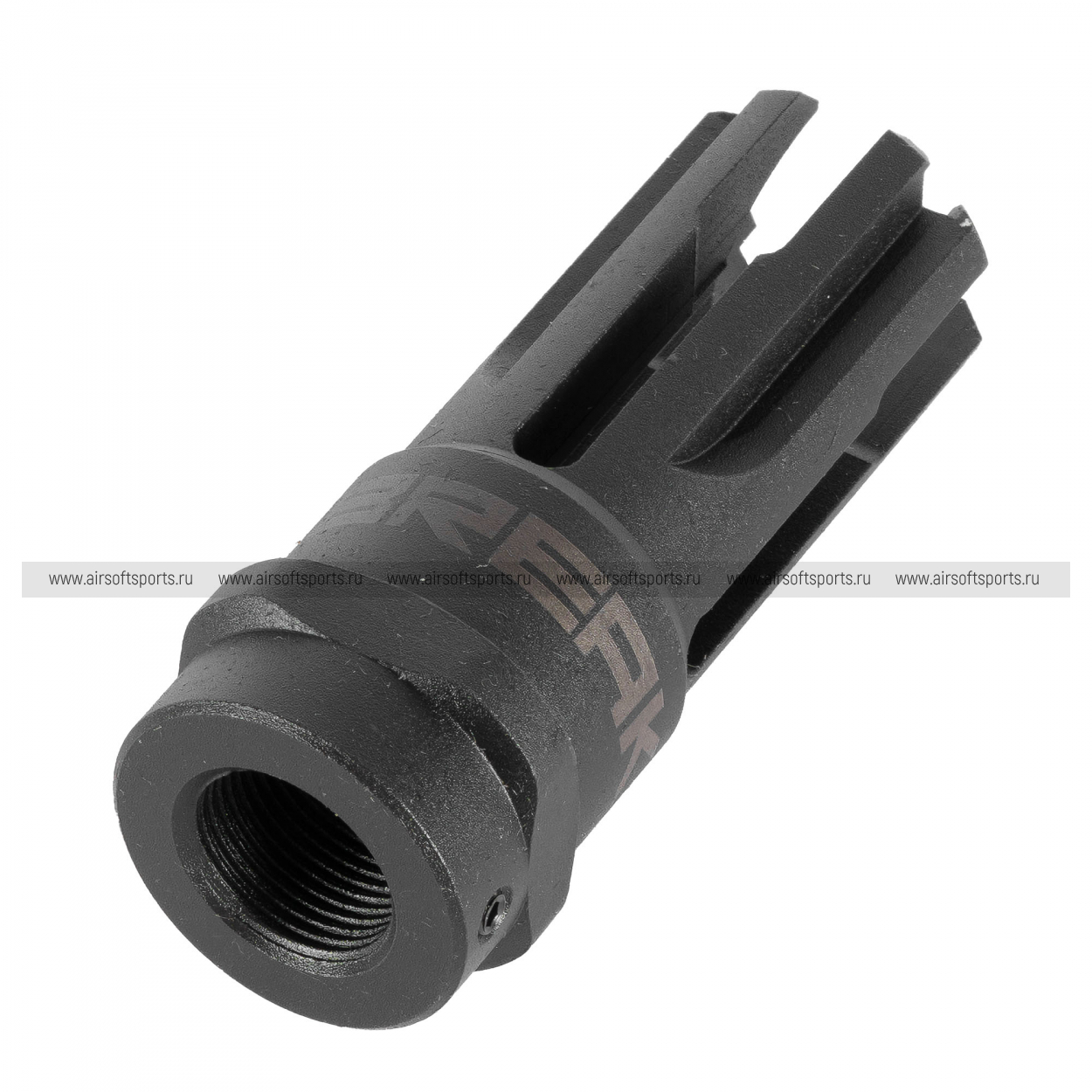 Имитация пламегасителя предназначена для установки на страйкбольные автоматы. На корпусе есть маркировки.