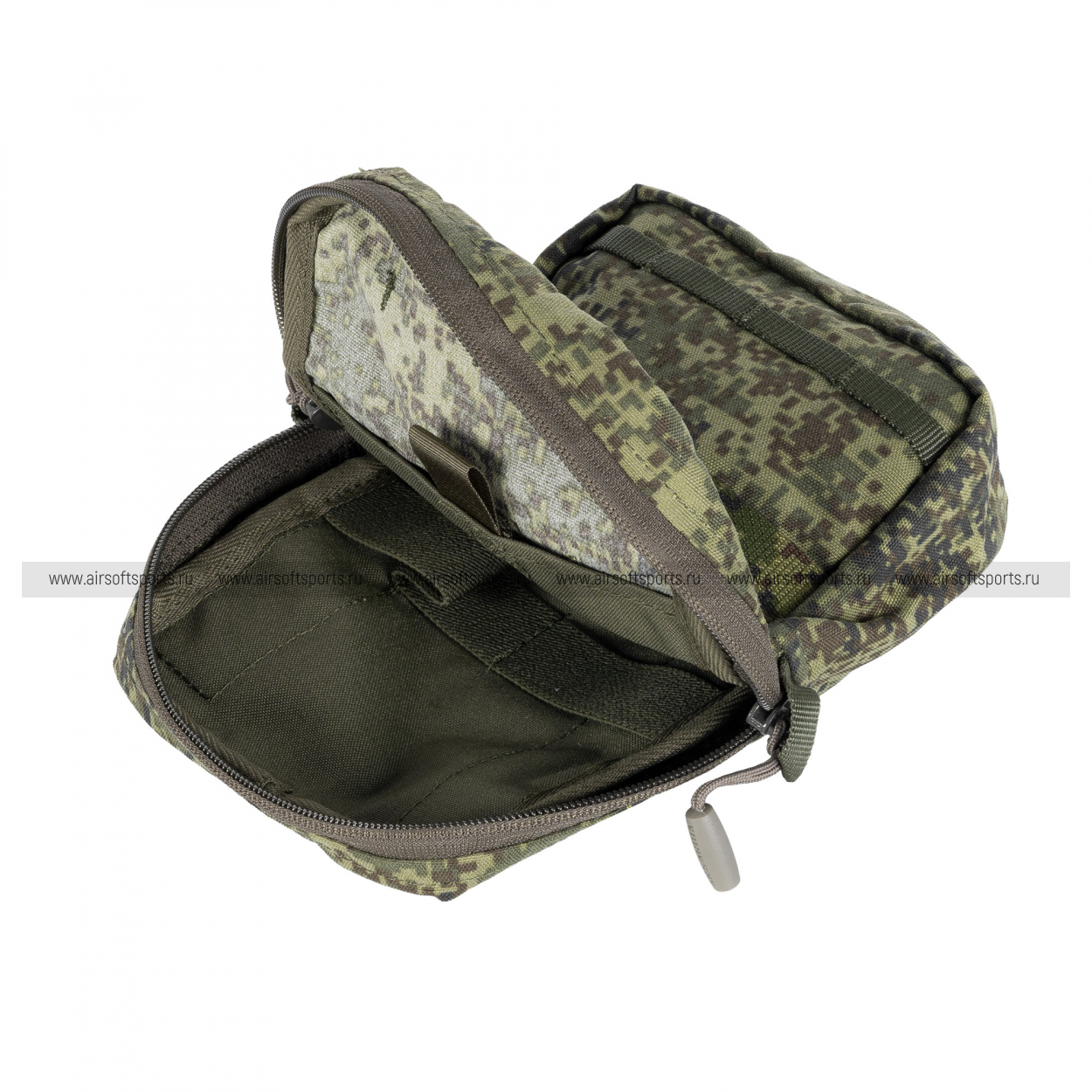 Занимает в ширину 4 MOLLE ячейки. Маленький вес, оптимальные пропорции размеров для удобного размещения на экипировке. На MOLLE снаружи можно разместить дополнительное снаряжение. Резинка и карман на липучке внутри подсумка помогут удобно разместить разные виды содержимого для быстрого доступа.