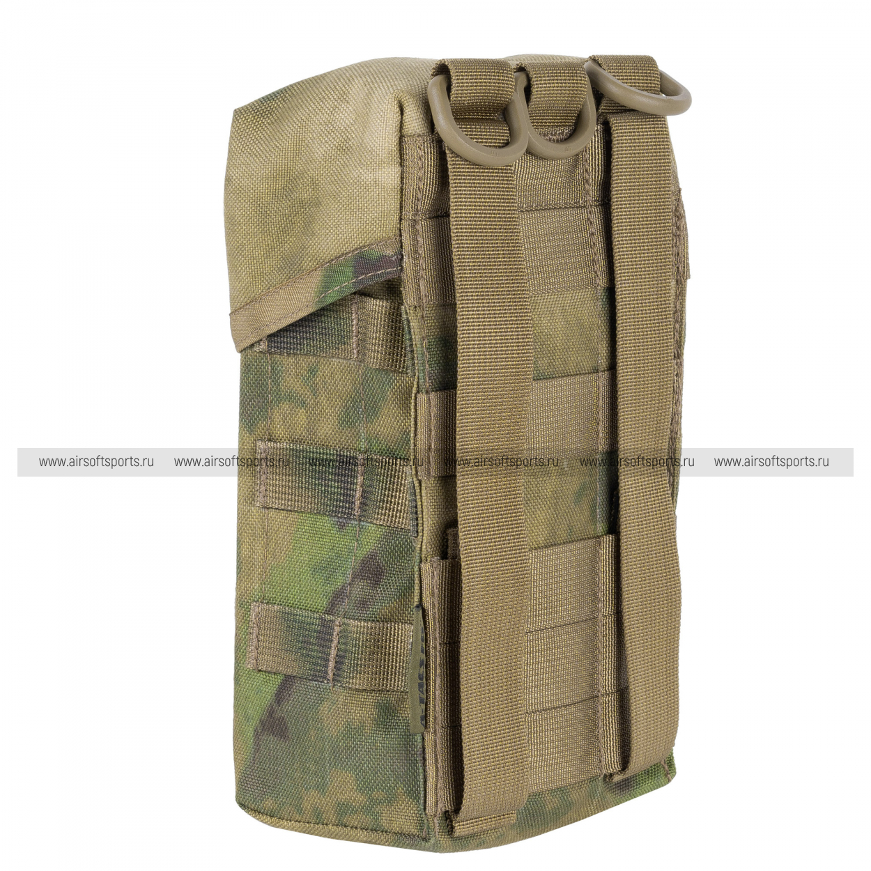 Подсумок на 100 патронов для ПК серии пулеметов калибра 7.62х54. Подсумок имеет систему крепления MOLLE и D-кольца для крепления к ним лямок РПС. Пластиковая вставка обеспечивает жесткость подсумка и удобство при размещении и извлечении пулеметной ленты. Фиксация клапана осуществляется с помощью фастекса небольшой велкро панели для подстраховки, если вам нужен быстрой доступ и фастекс уже растегнут. На боковых и верхней гранях расположены MOLLE стропы для размещения подсумков и другой экипировки.