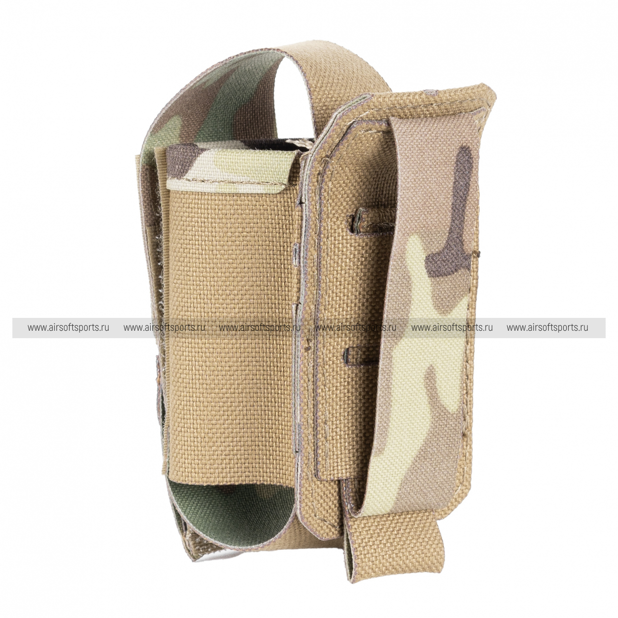 Подсумок выполнен из кордуры — ткани, которая известна высокой износостойкостью. Она хорошо подходит для экипировки, которая постоянно испытывает нагрузку: трение о снаряжение, зацепы и регулярное использование.