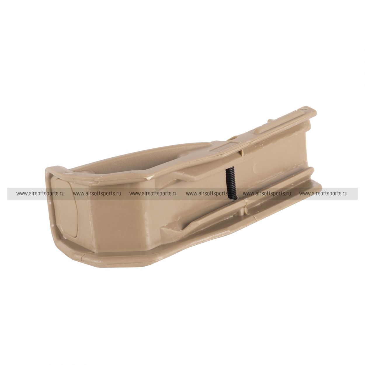 Тактическая рукоятка FSG (TAN) — компактный низкопрофильный упор для передней части оружия, созданный для естественного хвата, стабильного контроля и быстрых переводов между целями без лишнего объема и веса. Геометрия формата finger stop помогает зафиксировать одинаковое положение кисти, разгружает запястье при длительной работе и предотвращает соскальзывание руки в сторону дульных устройств или горячих зон ствола, что особенно актуально на коротких цевьях. Корпус выполнен из ударопрочного полимера с матовой песочной текстурой, обеспечивающей цепкое сцепление в перчатках и голой рукой; покрытие стойко к истиранию и не бликует, гармонично сочетается с снаряжением в оттенках Tan/Coyote/Multicam. Низкий профиль оставляет достаточно места для фонаря, ЛЦУ и кабель-менеджмента, не цепляется за экипировку и облегчает манипуляции с предохранителем и аксессуарами. Установка выполняется на стандартную направляющую 20 мм (Picatinny/1913) с помощью комплектного крепежа, допускается подбор положения по длине цевья под индивидуальный стиль хвата; совместимость охватывает карабины, пистолет‑пулеметы, дробовики с планкой Picatinny и страйкбольные реплики. Простое обслуживание сводится к периодической протирке и проверке затяжки винта. FSG (TAN) — практичный выбор для динамичных упражнений, тренировок и повседневной стрельбы, когда важны уверенный контроль, повторяемость хвата и минимальный вес.