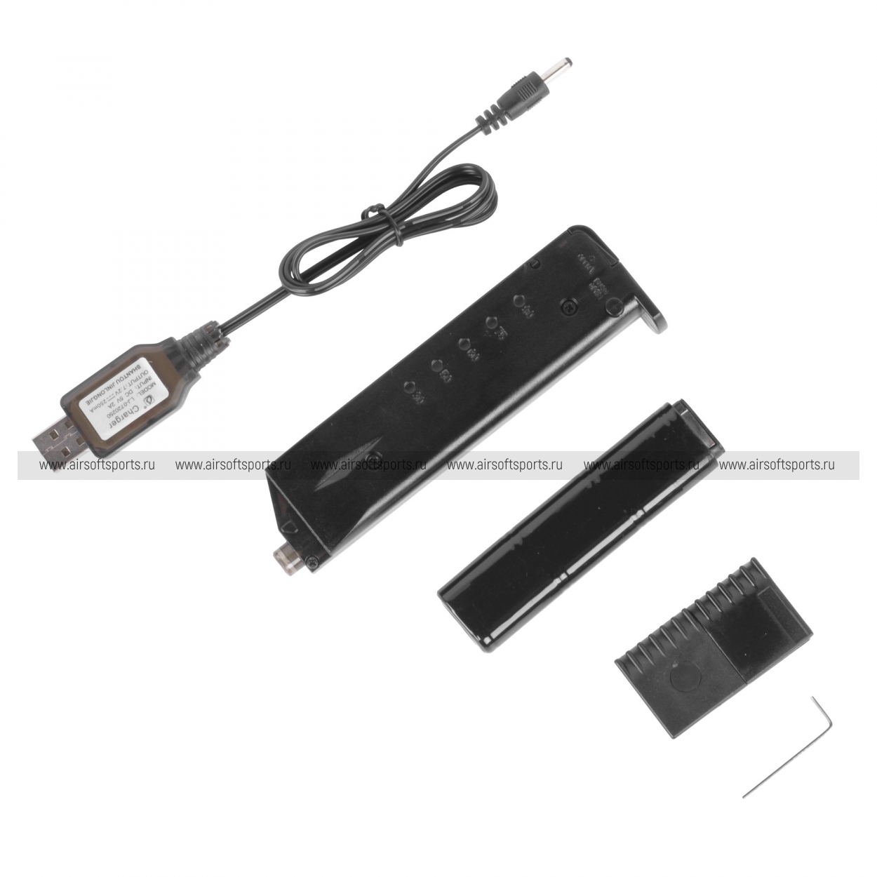Аккумуляторный отсек располагается под затворной рамой, тип аккумулятора - "рельса".
