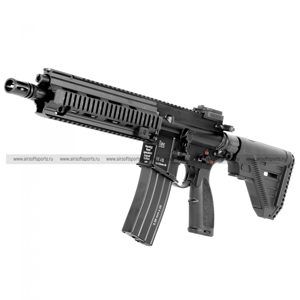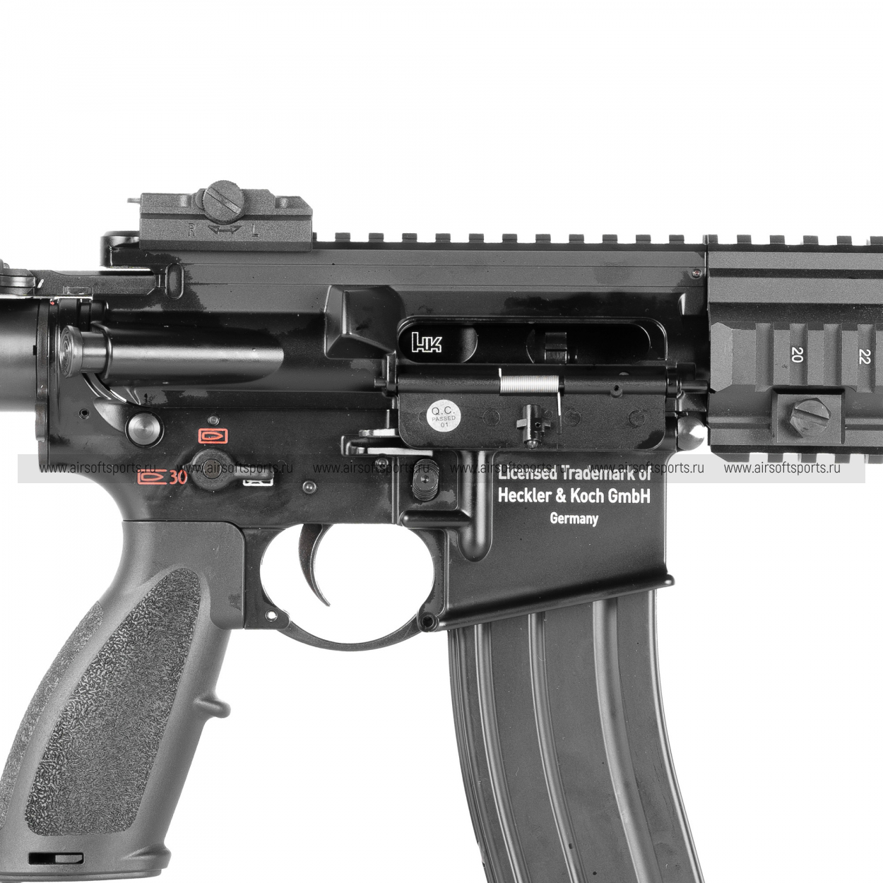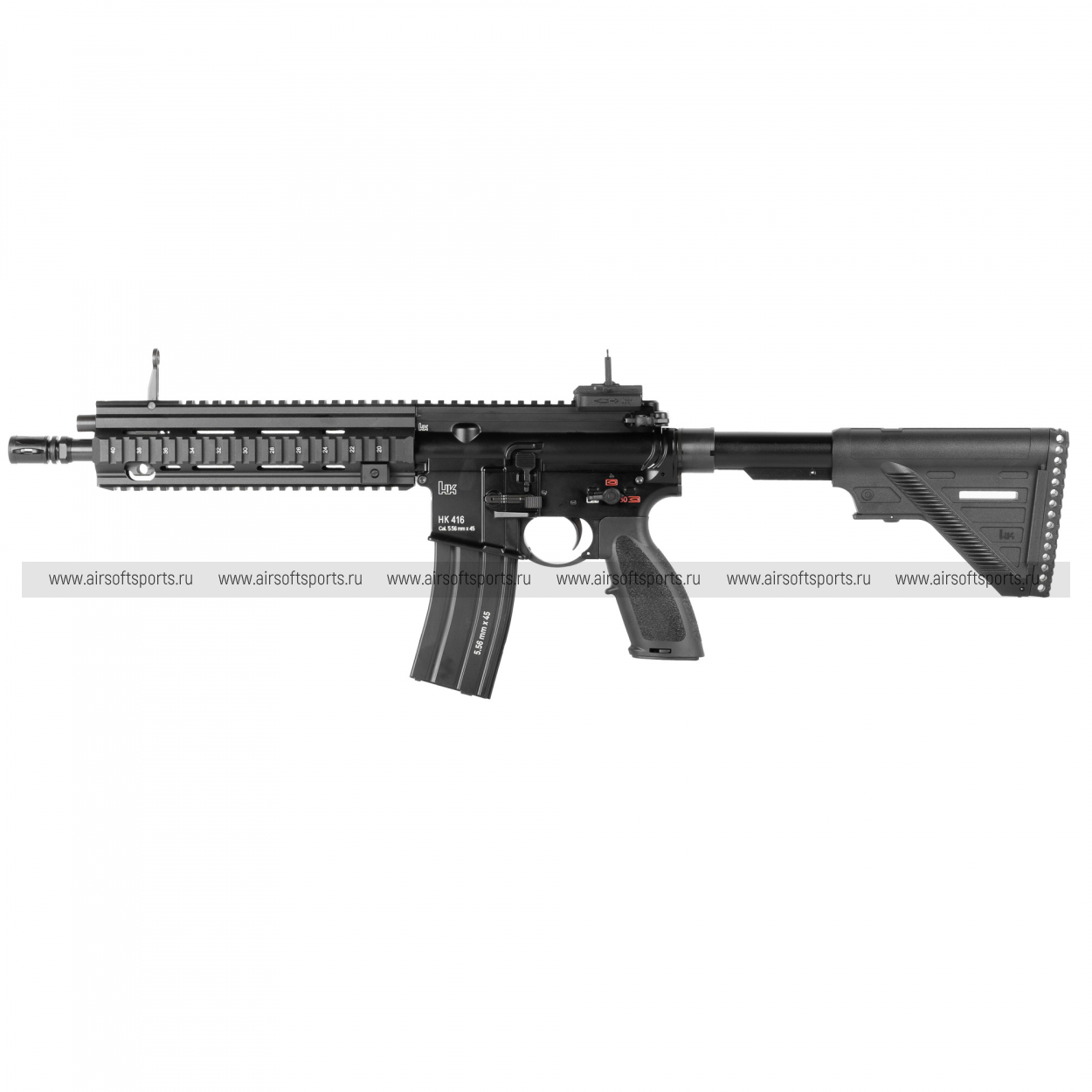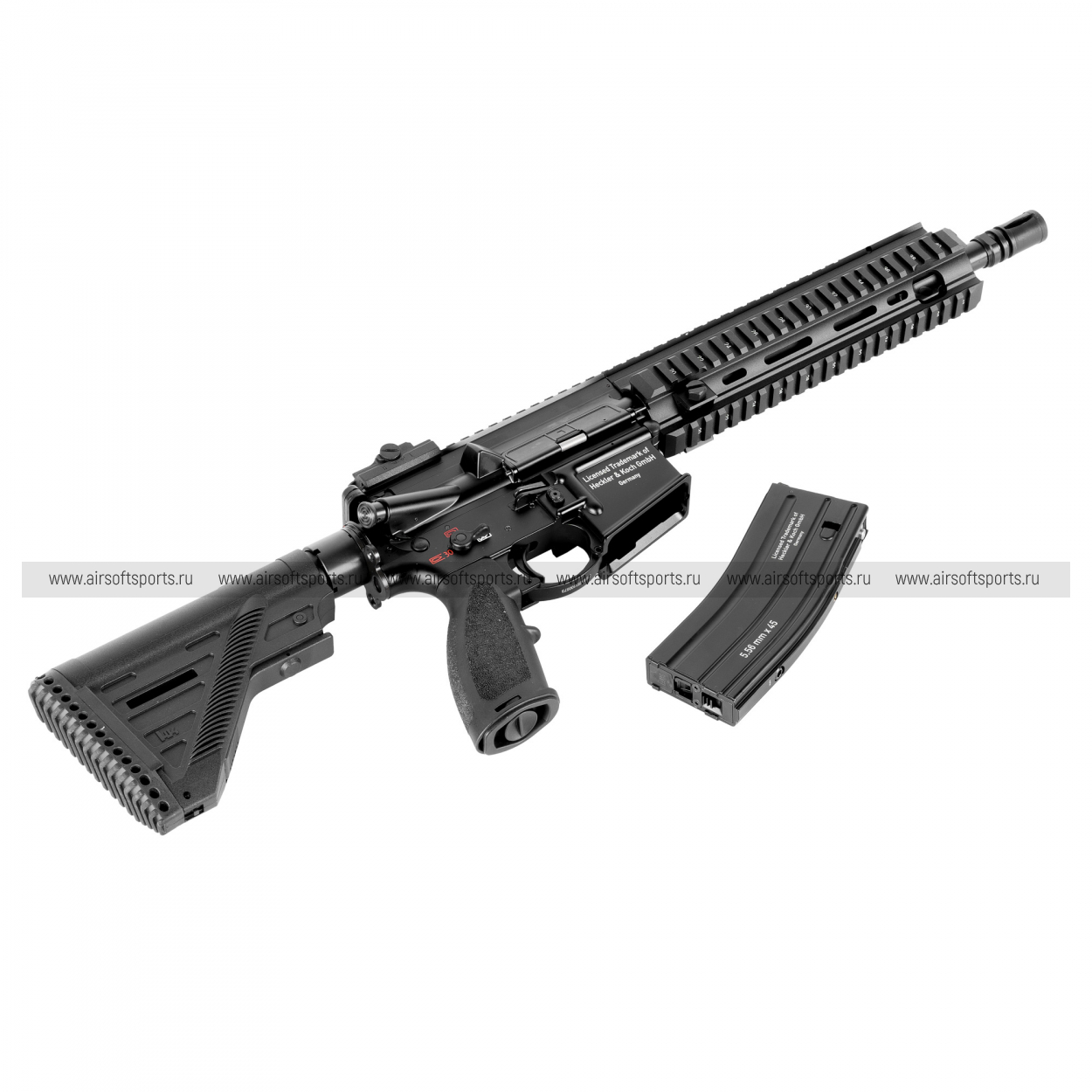 Магазин — металлический, на 30 шаров, с маркировками “Heckler & Koch” и “5.56mm x 45”, что завершает цельный «реал-стайл» образ.