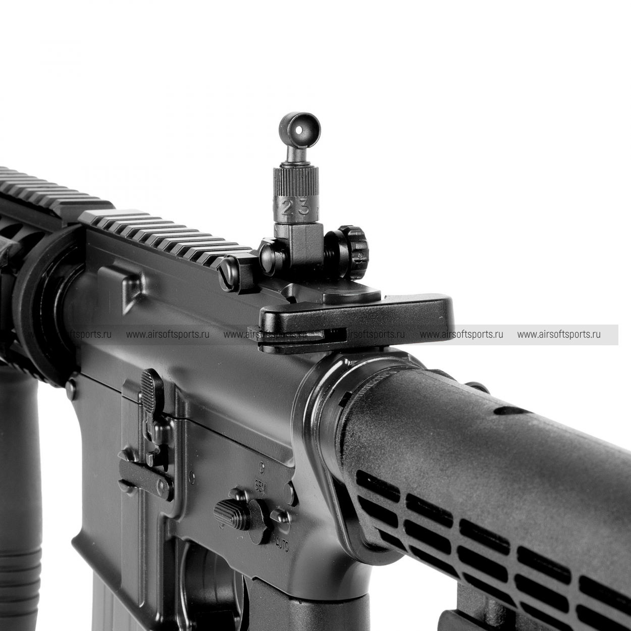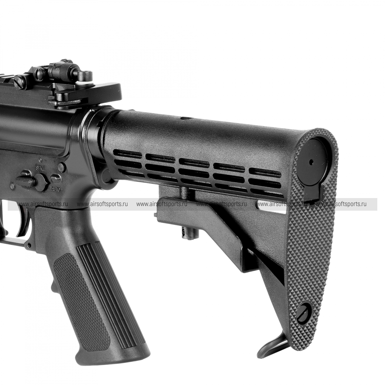 — телескопический (регулируемый) приклад придаёт модели «динамичный» вид и подчёркивает назначение под разные роли и рост стрелка;