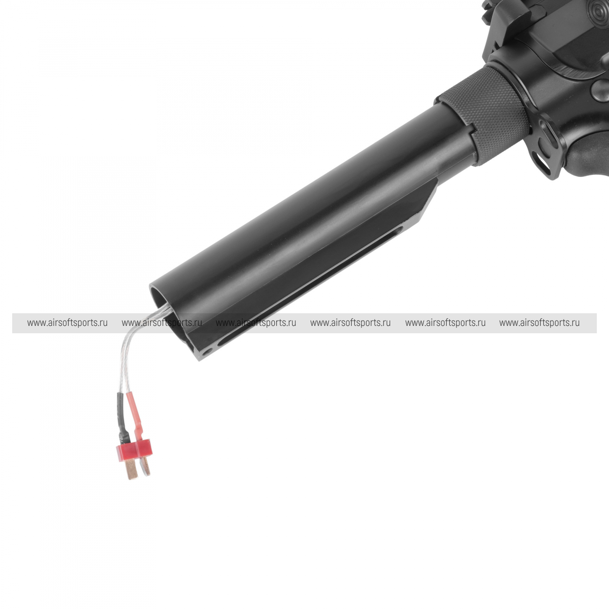 Отсек для аккумулятора находится в прикладе. Внутри приклада достаточно свободного места для установки стандартных аккумуляторов CQB или AK типа с разъемом T-Plug. Рекомендуемая мощность аккумулятора 11.1В. Одного заряда аккумулятора хватает на несколько часов работы.