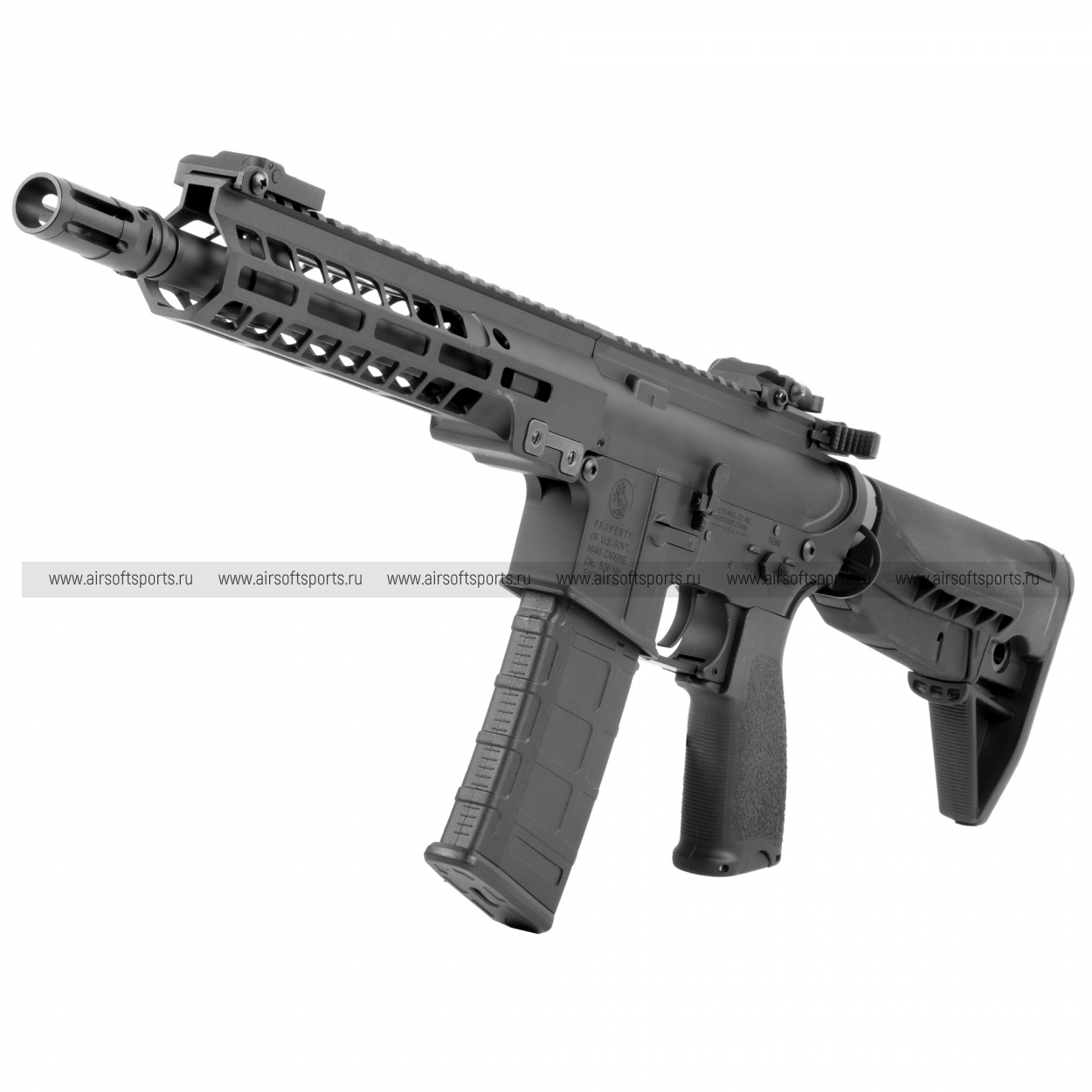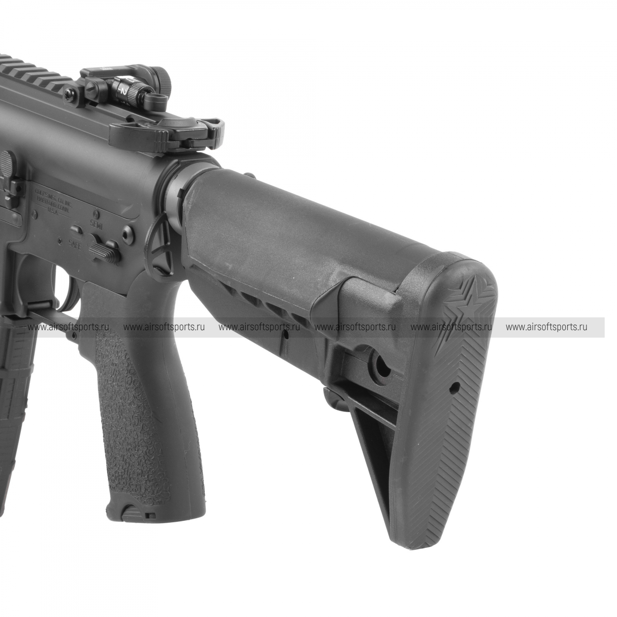 Телескопический приклад автомата выполнен в тактическом стиле, с возможностью регулировки по длине. Это позволяет настроить автомат под индивидуальные предпочтения стрелка и обеспечивает комфортное прицеливание.