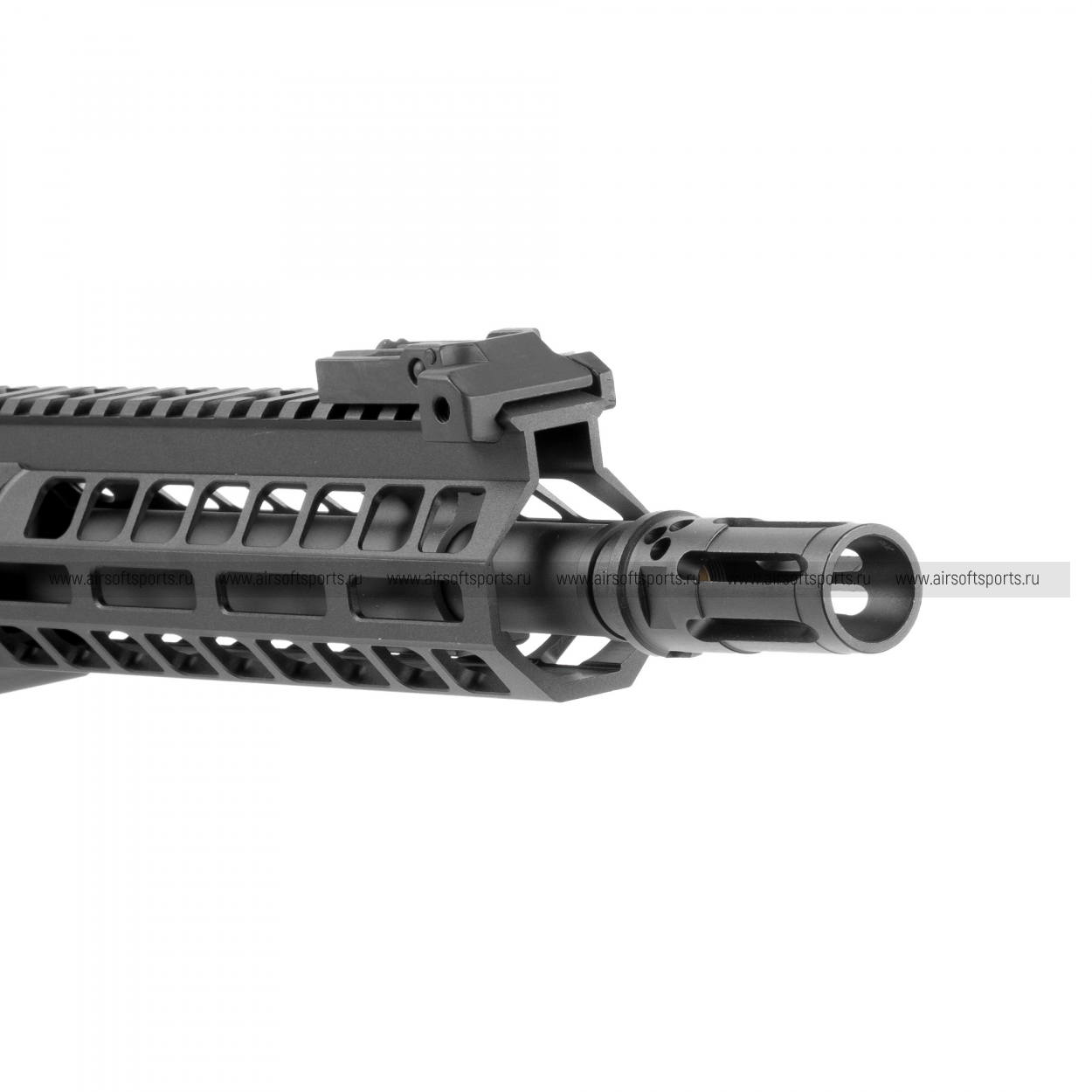 Основной особенностью внешнего вида является 9.5-дюймовое цевье стандарта M-LOK. Это современная система крепления аксессуаров, которая позволяет устанавливать на автомат различные приспособления – тактические фонари, лазерные целеуказатели, рукоятки и многое другое. Интерфейс M-LOK расположен по всей длине цевья, что дает широкие возможности для кастомизации. Само цевье имеет эргономичную форму, удобно лежит в руке и обеспечивает надежный хват.