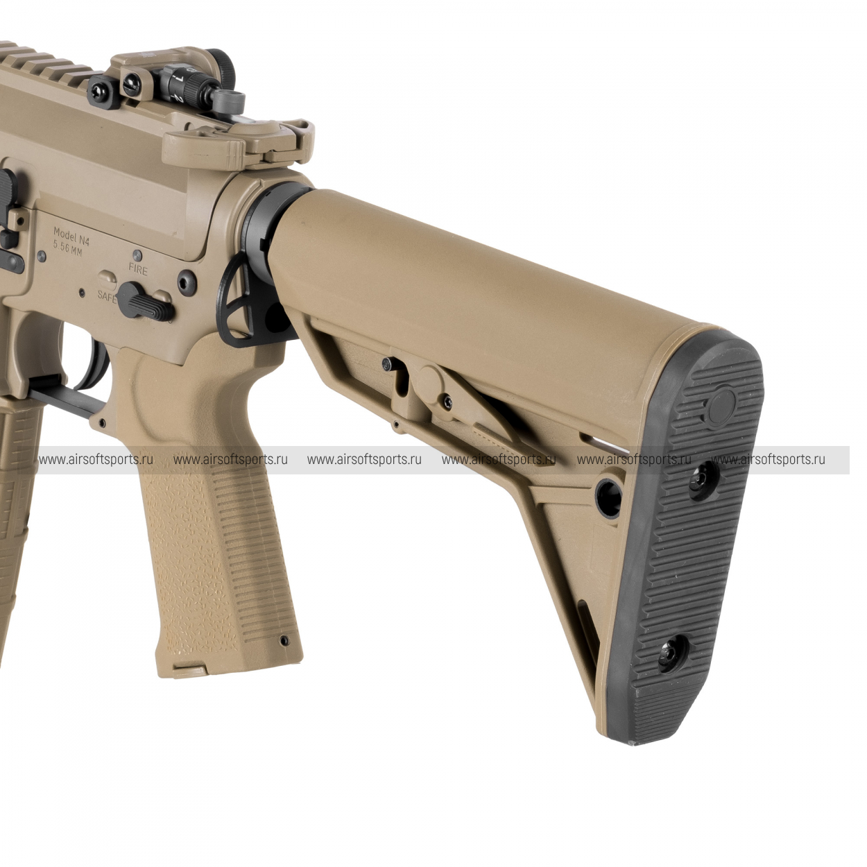Автомат построен на платформе AR-15 и имеет стандартный магазиноприемник под магазины формата 5,56. Пистолетная рукоятка и телескопический приклад типа Magpul MOE SL-K выполнены из ударопрочного ABS-пластика. Приклад позволяет не только настроить длину привода под любого стрелка, но и служит вместительным отсеком для размещения аккумулятора. Функция имитации затворной задержки добавляет антуража при перезарядке.