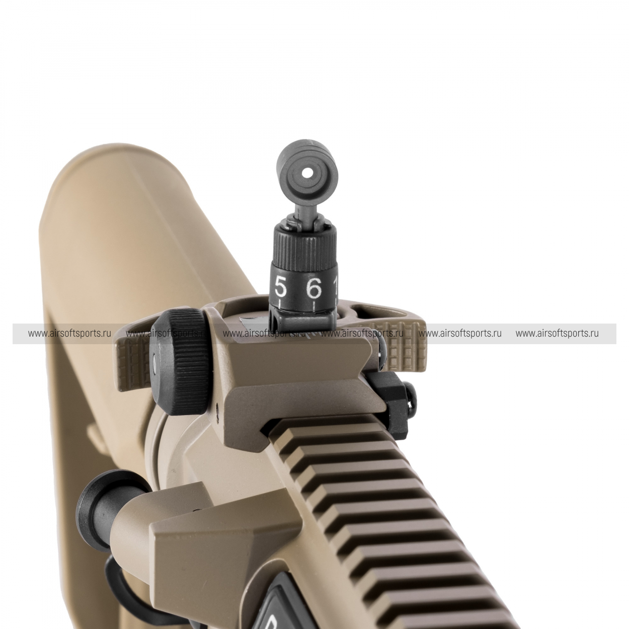 Для установки аксессуаров предусмотрены современные интерфейсы: длинная планка Пикатинни на верхней части корпуса для оптики и система M-LOK на цевье для фонарей, рукояток и ЛЦУ. В комплекте идут съемные механические прицельные приспособления (целик и мушка).