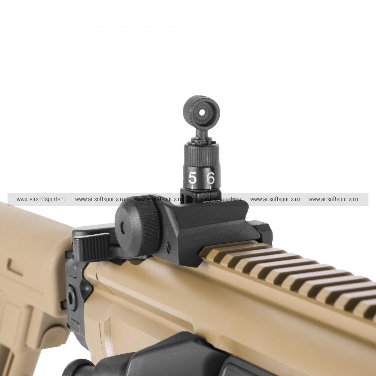 Съемный приклад MCX устанавливается благодаря направляющей Пикатинни. Таким образом можно заменить его на другой, со схожим типом крепления. Приклад телескопический, что позволяет настроить автомат под индивидуальные предпочтения стрелка и обеспечивает комфортное прицеливание.