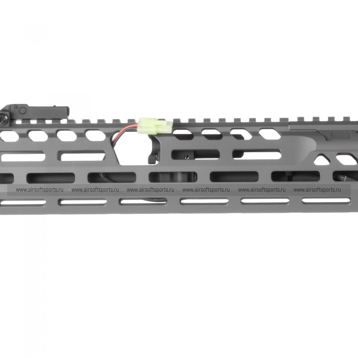 Проводка выведена в цевье. Для удобного использования автомата рекомендуется приобрести имитацию анпека в качестве аккумуляторного отсека, например PEQ-15 от Cyma. Разъем Mini-Tamiya.