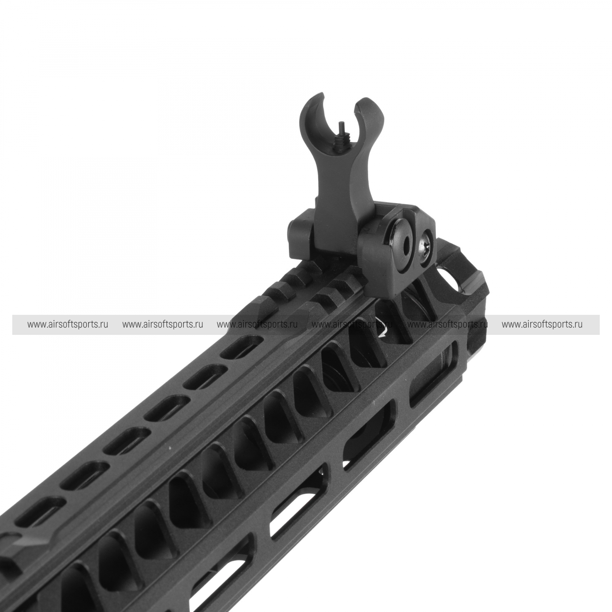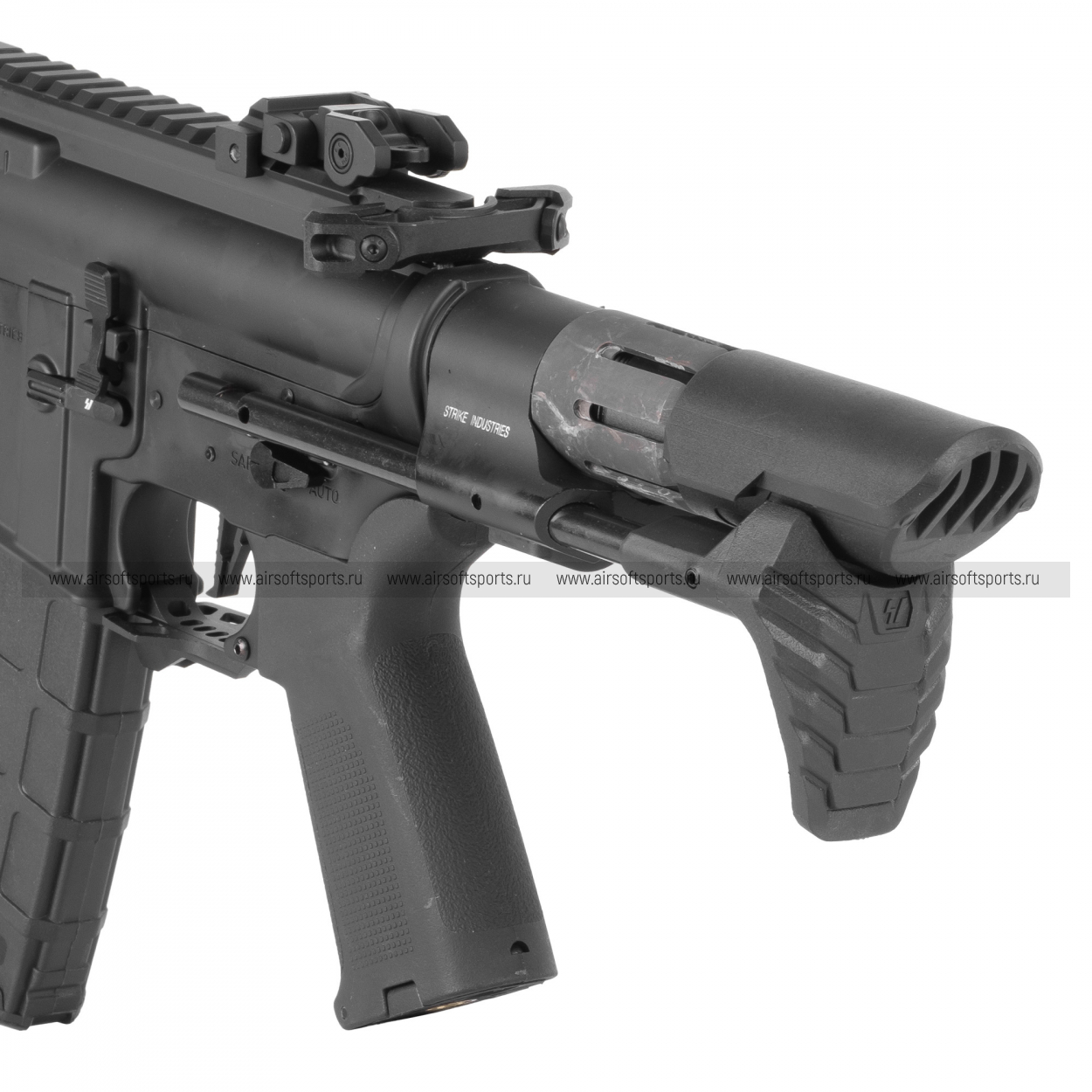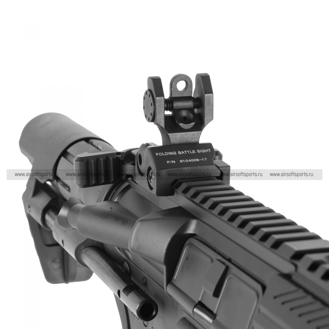 Телескопический приклад автомата выполнен в тактическом стиле, с возможностью регулировки по длине. Это позволяет настроить автомат под индивидуальные предпочтения стрелка и обеспечивает комфортное прицеливание.
