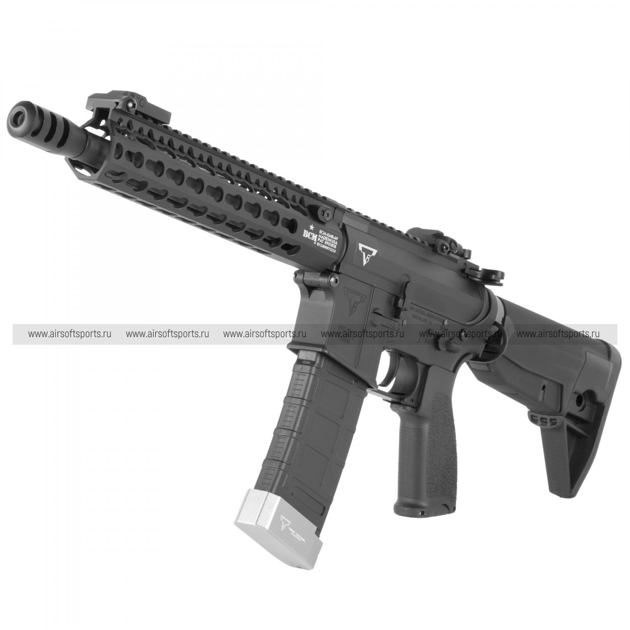 Основной особенностью внешнего вида является 9-дюймовое цевье стандарта KeyMod. Это современная система крепления аксессуаров, которая позволяет устанавливать на автомат различные приспособления – тактические фонари, лазерные целеуказатели, рукоятки и многое другое. Интерфейс M-LOK расположен по всей длине цевья, что дает широкие возможности для кастомизации. Само цевье имеет эргономичную форму, удобно лежит в руке и обеспечивает надежный хват.