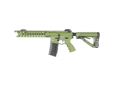 Автомат работает по принципу AEG, сочетая в себе высокую скорострельность и современную эргономику, что делает его универсальным решением для игр на средних и ближних дистанциях в любое время года.