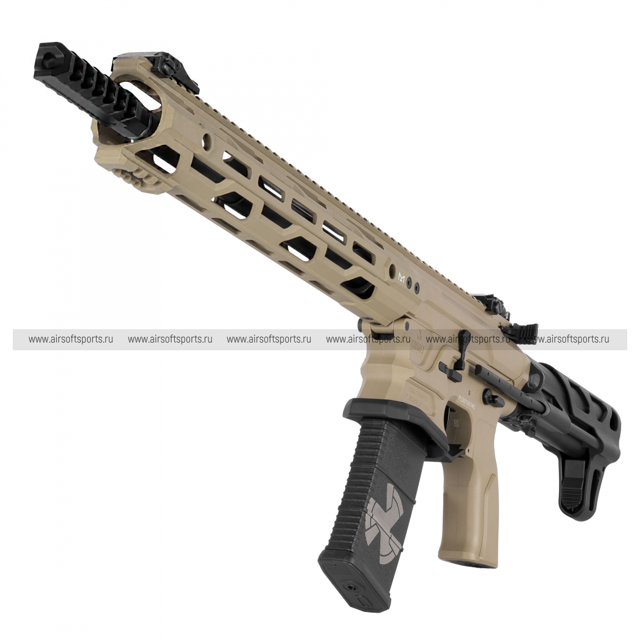 Автомат работает по принципу AEG, сочетая в себе высокую скорострельность и современную эргономику, что делает его универсальным решением для игр на средних и ближних дистанциях в любое время года.