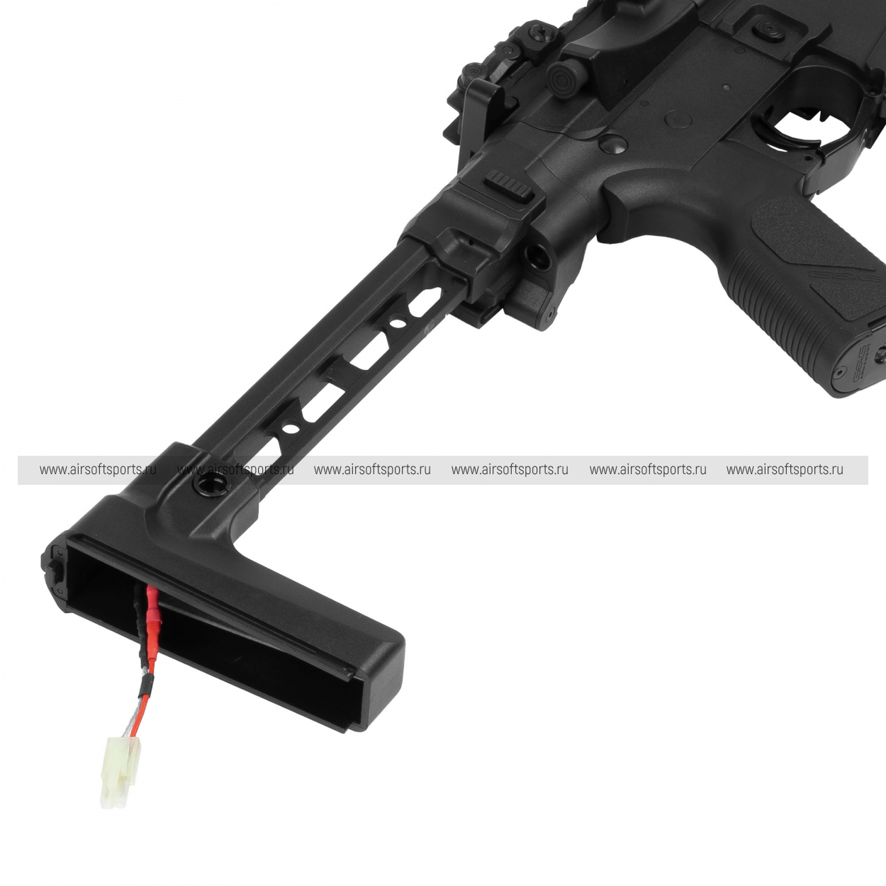Отсек для аккумулятора находится в прикладе. Конструкция приклада имеет пространство, позволяющее разместить компактные Li-Po аккумуляторы напряжением 11.1В, которые рекомендуются для стабильной работы электронной платы.