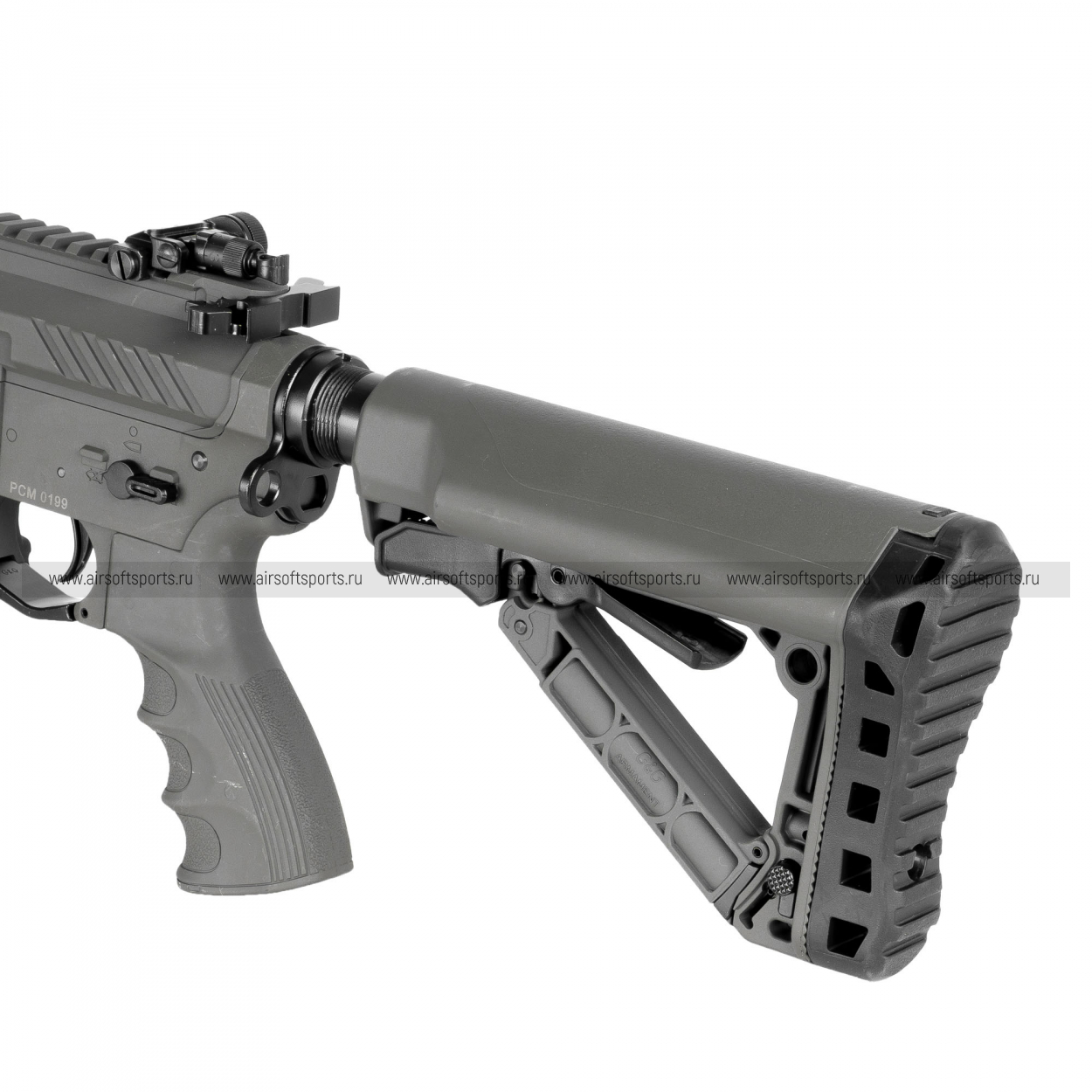 CM16 SRL выглядит строго, современно и сбалансированно. Верхняя планка Пикатинни по всей длине корпуса делает профиль цельным и функциональным, складные прицельные приспособления органично вписываются в общий образ, а скелетный телескопический приклад добавляет модели визуальной легкости. Эргономичная пистолетная рукоять и фактурный магазин в стиле современной AR-платформы завершают внешний вид, делая его практичным, узнаваемым и актуальным.