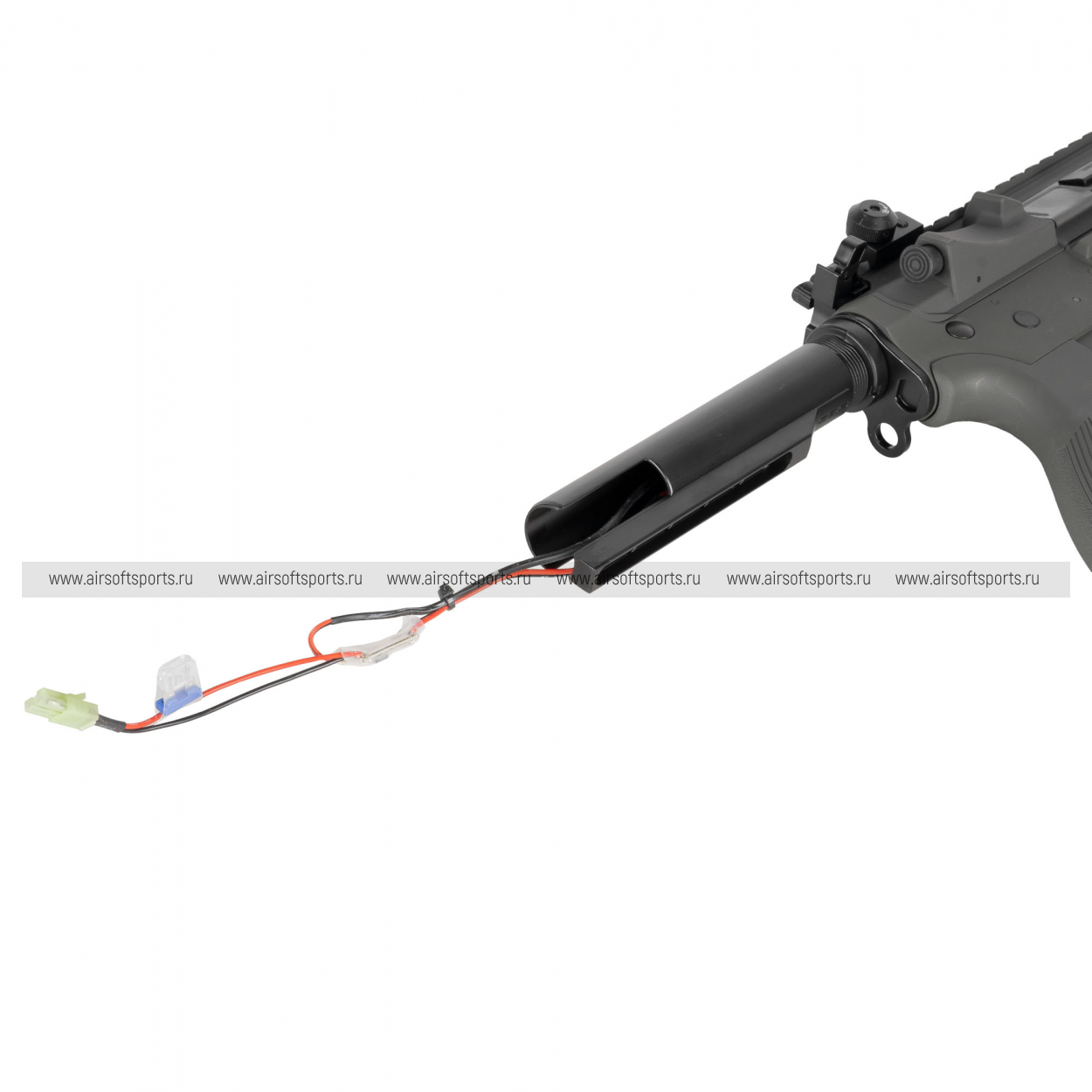 Отсек для аккумулятора находится в телескопическом прикладе GOS-V3. В боковых отсеках приклада достаточно места для размещения двух- или трехлепестковых Li-Po аккумуляторов.