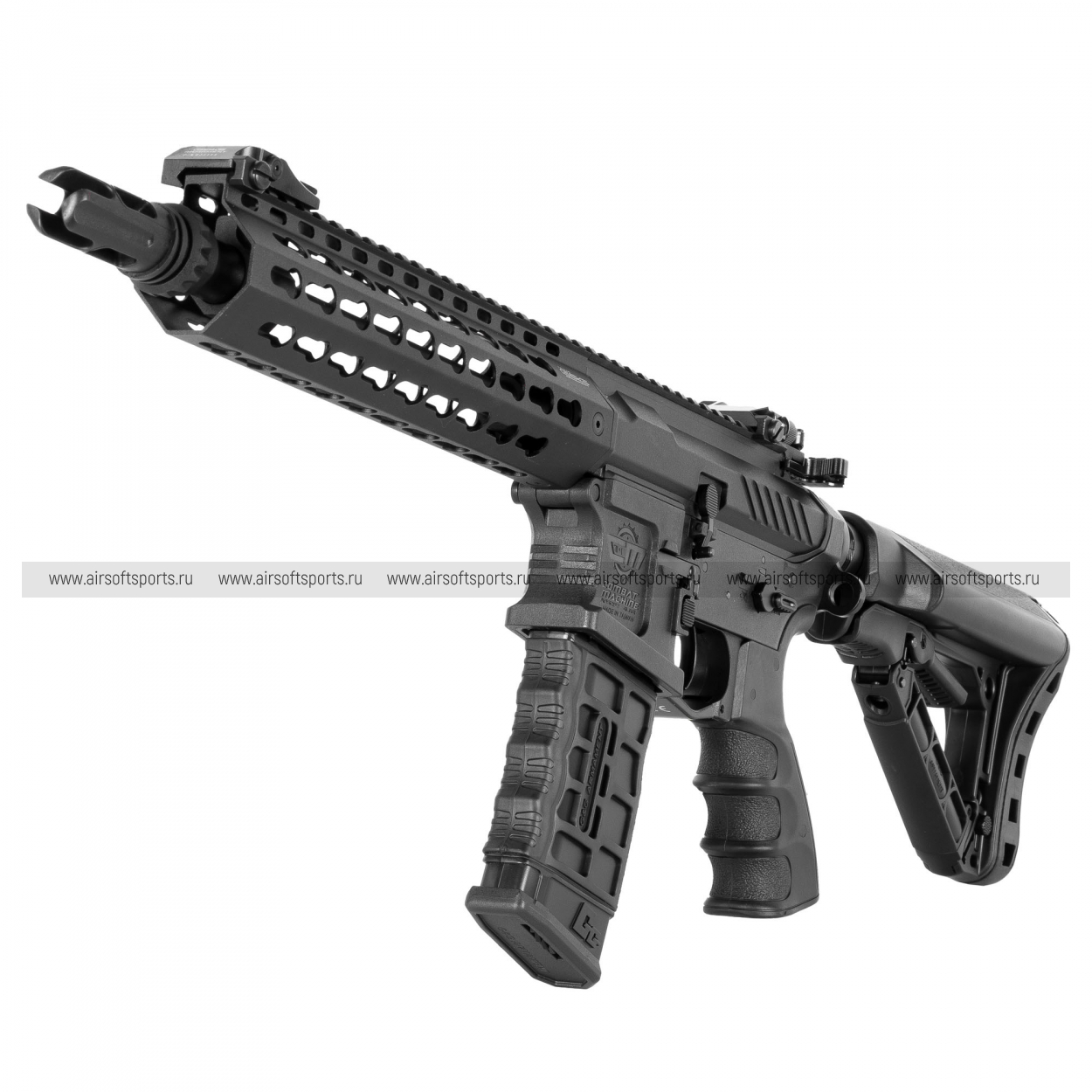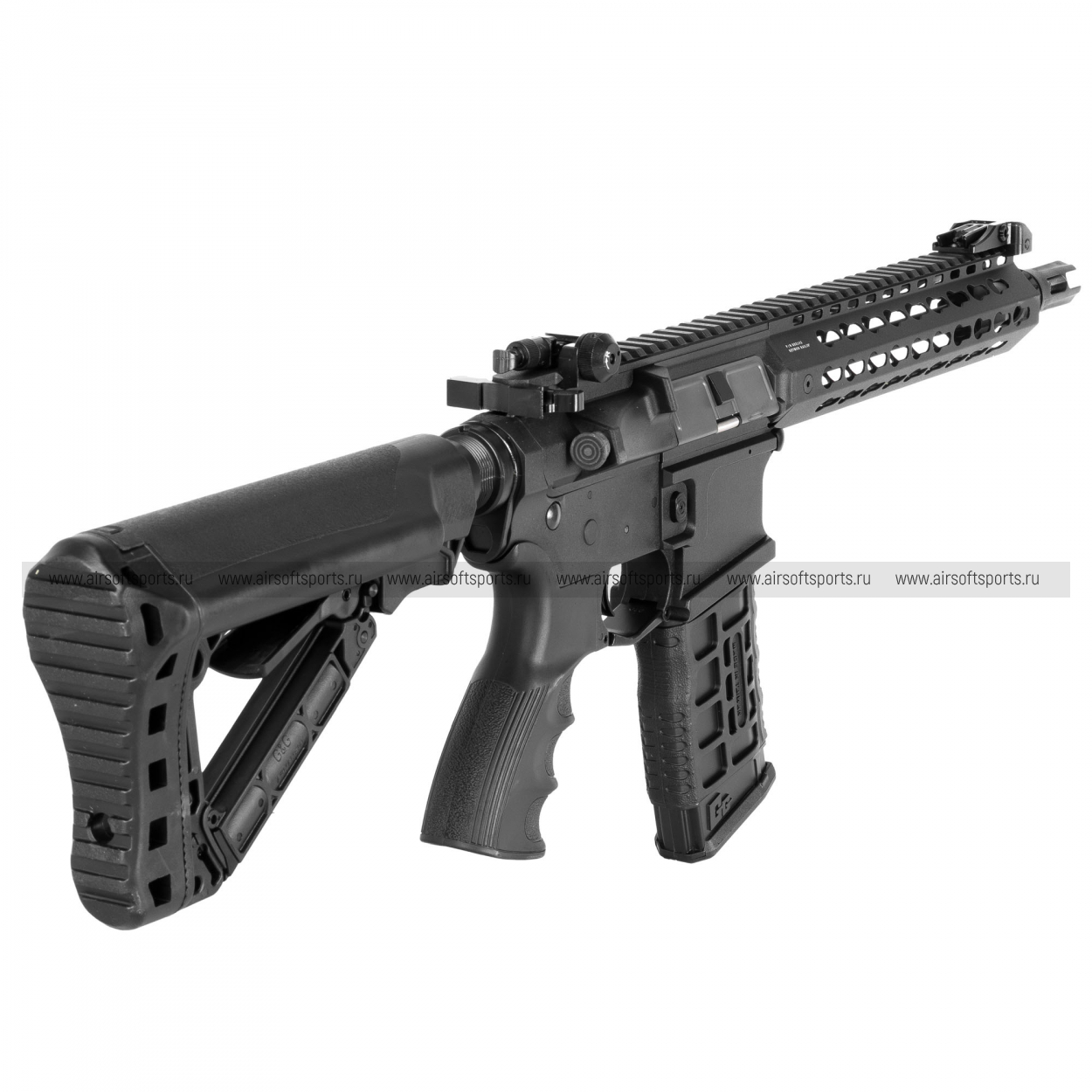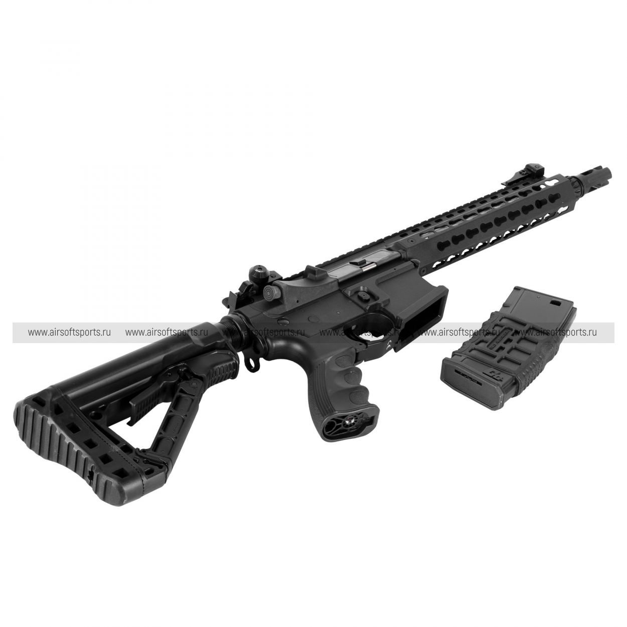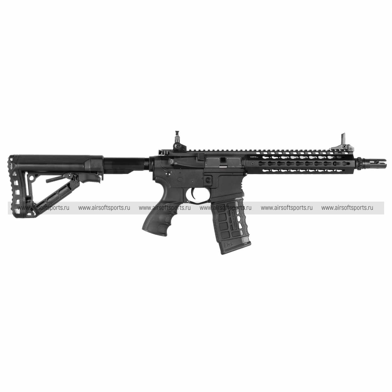 CM16 SRL выглядит строго, современно и сбалансированно. Верхняя планка Пикатинни по всей длине корпуса делает профиль цельным и функциональным, складные прицельные приспособления органично вписываются в общий образ, а скелетный телескопический приклад добавляет модели визуальной легкости. Эргономичная пистолетная рукоять и фактурный магазин в стиле современной AR-платформы завершают внешний вид, делая его практичным, узнаваемым и актуальным.
