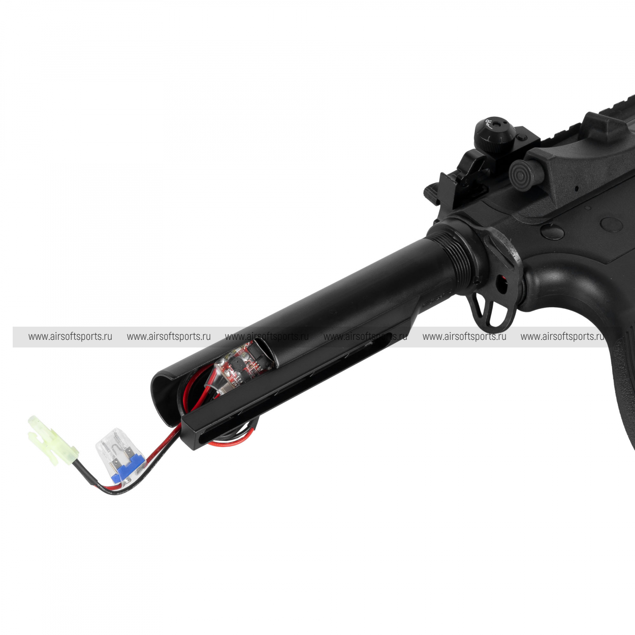 Отсек для аккумулятора находится в прикладе. Внутри приклада достаточно свободного места для установки стандартных аккумуляторов с разъемом Мини-Тамия. Одного заряда аккумулятора хватает на несколько часов работы.
