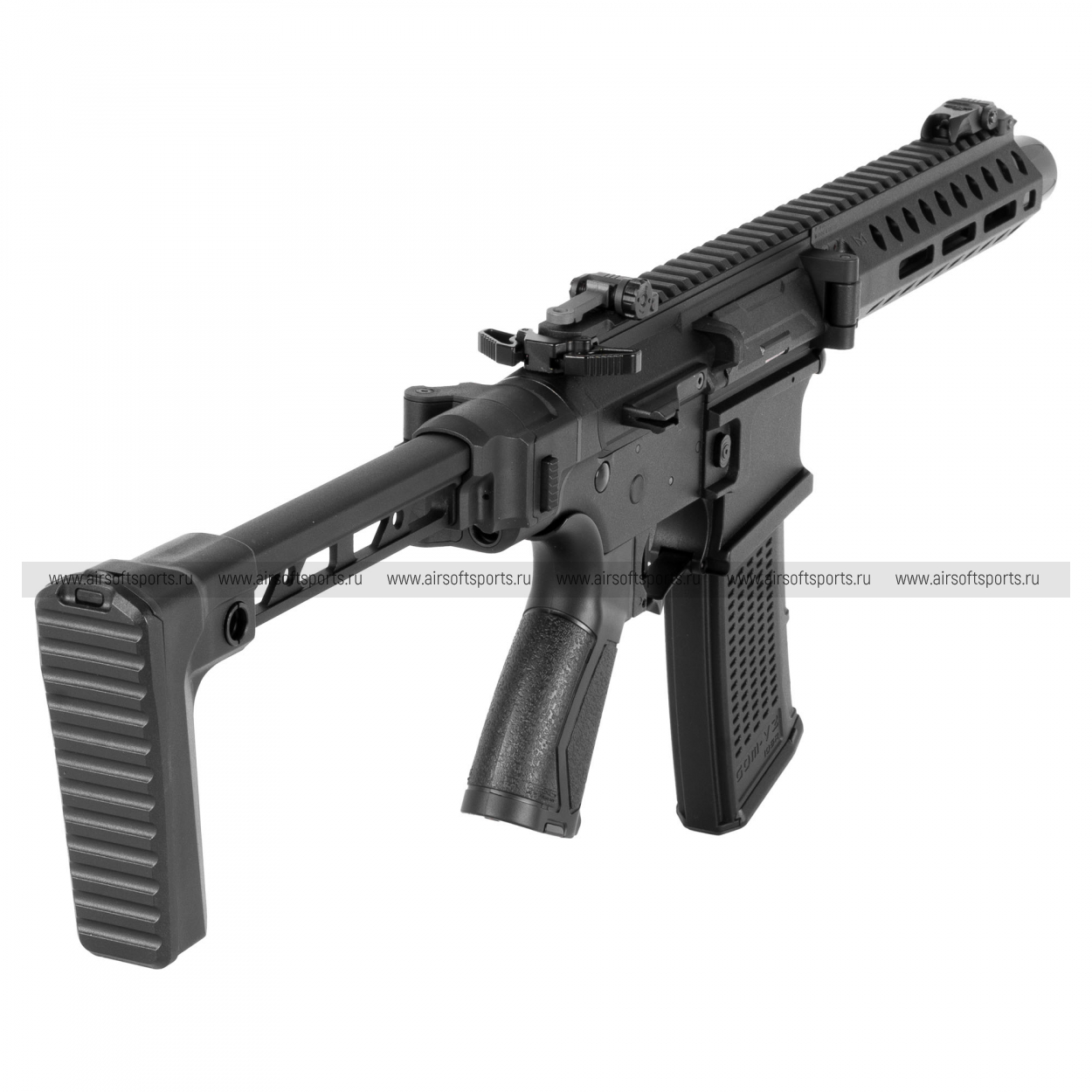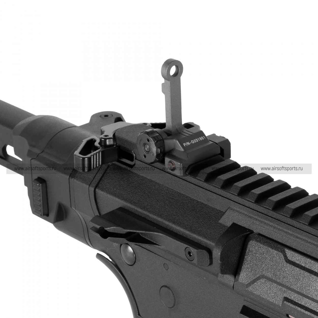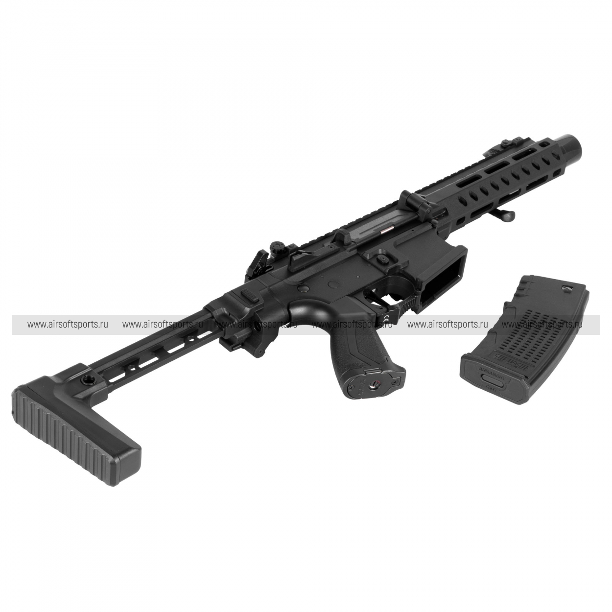 Страйкбольный автомат работает по принципу AEG, а его главная особенность — уникальная складная конструкция (складывается не только приклад, но и ствол), что делает его идеальным вариантом для скрытой переноски в любое время года.