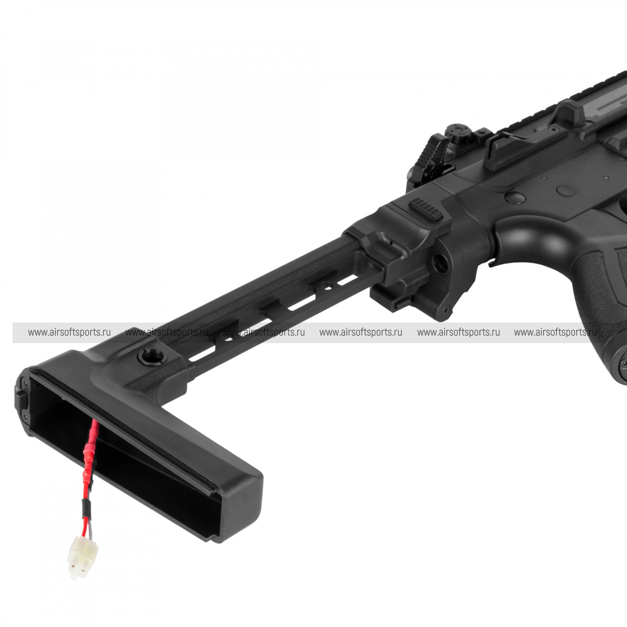 Отсек для аккумулятора находится в складном прикладе (CHFS — Combat Hot-Swap Folding Stock). Благодаря инновационной системе токопроводящих шарниров, привод может стрелять со сложенным прикладом.