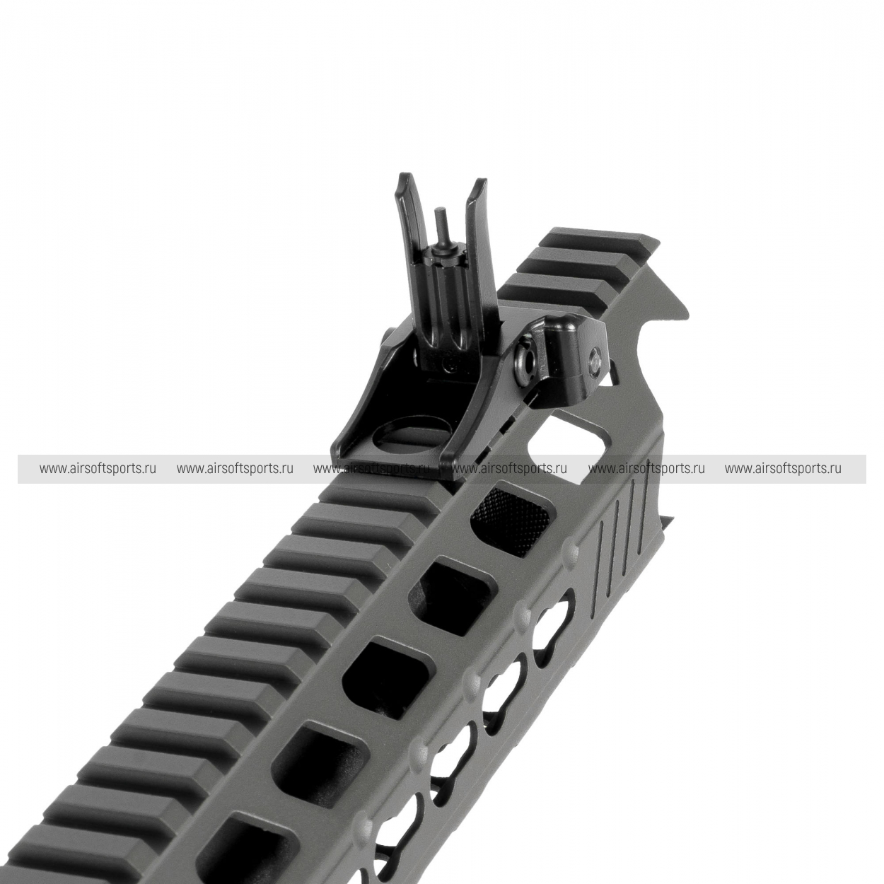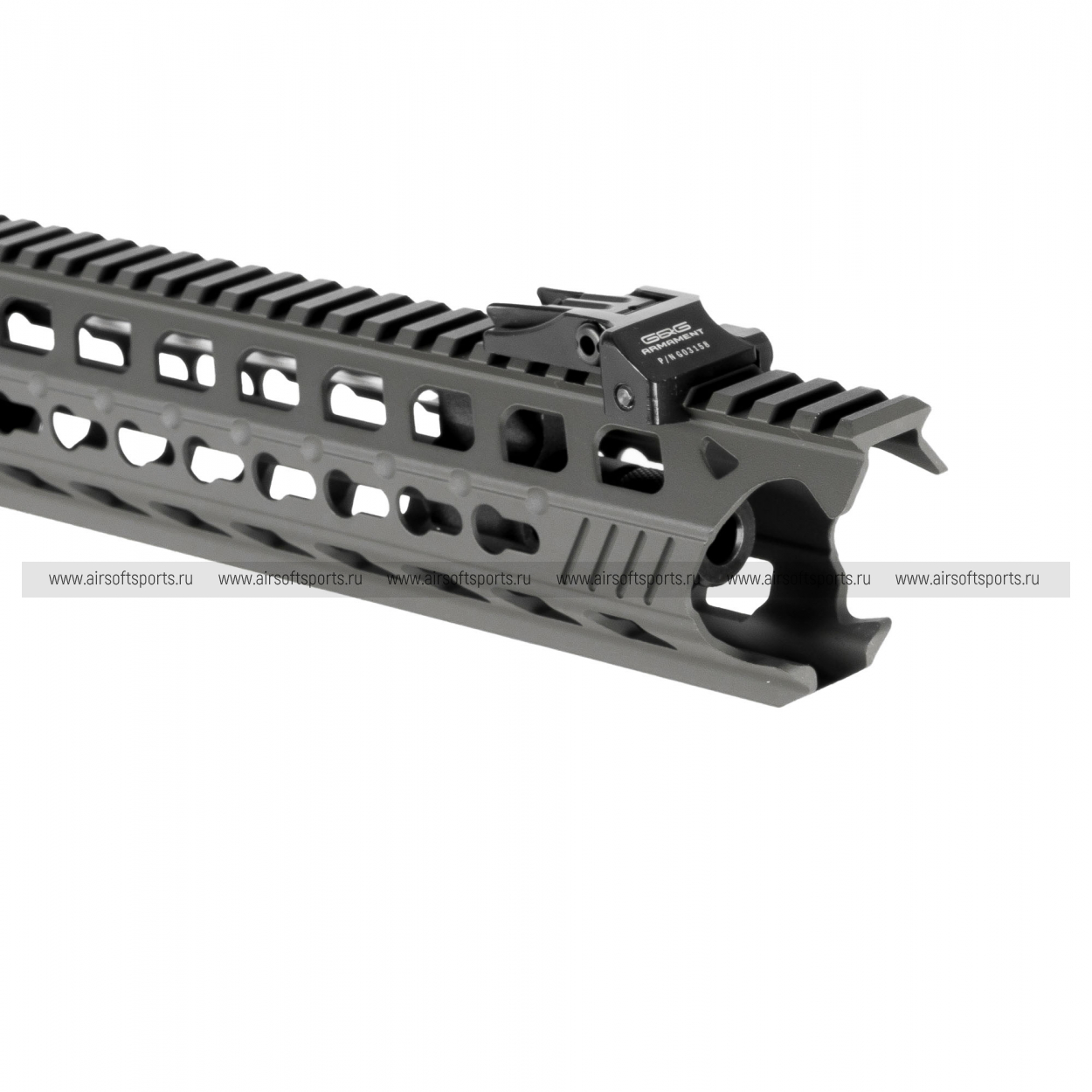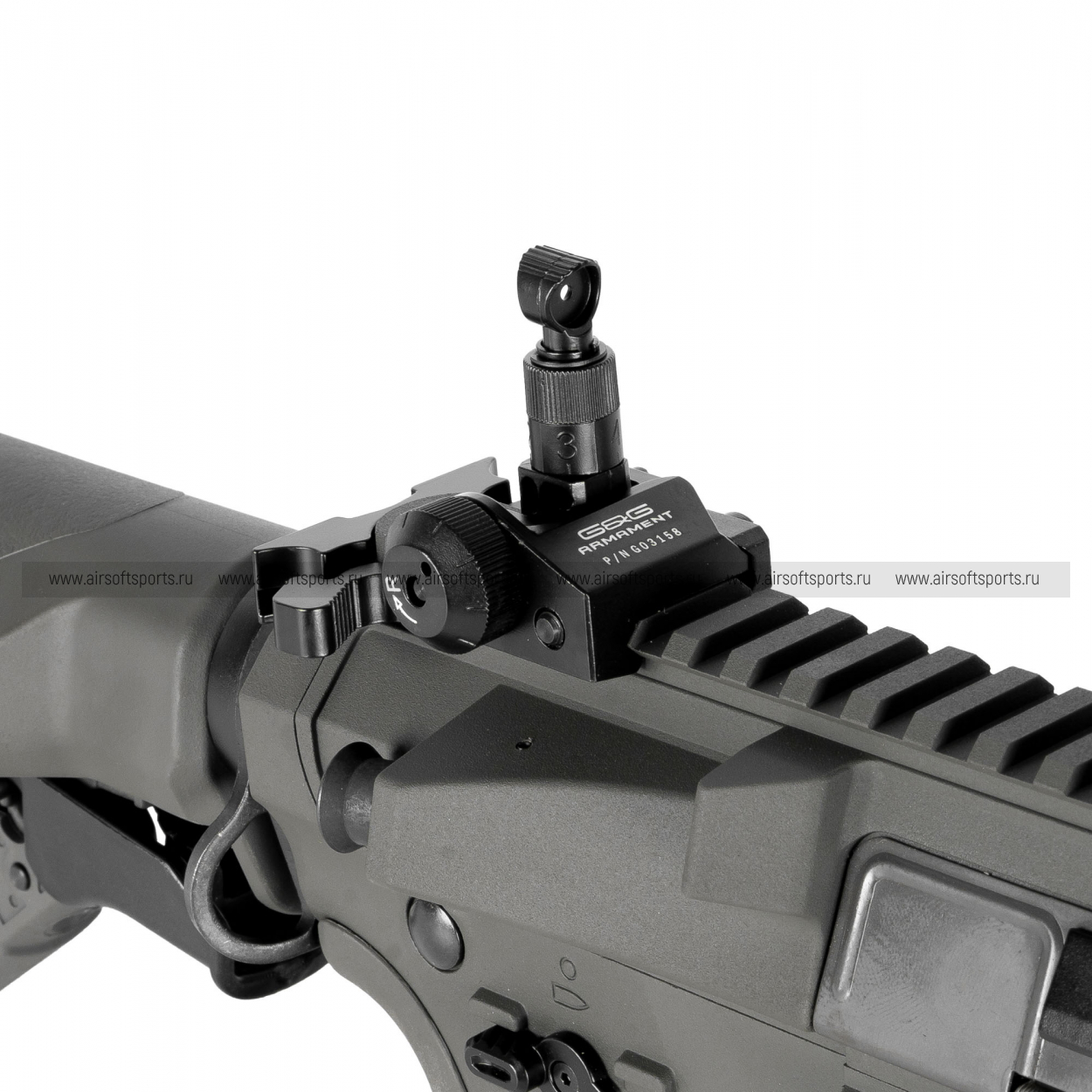 GC16 Predator выглядит современно, агрессивно и очень технологично. Длинное облегчённое цевьё с крупными продолговатыми прорезями делает силуэт вытянутым, легким и динамичным, а верхняя планка по всей длине корпуса визуально объединяет конструкцию в цельный профиль. Складные механические прицельные приспособления аккуратно дополняют общий образ, а характерные формы цевья и его передней части добавляют модели более выразительный и почти кастомный внешний вид. Телескопический приклад с облегчённой конструкцией, эргономичная пистолетная рукоять с рельефом под пальцы и магазин в современном стиле AR-платформы завершают образ. В целом привод смотрится стильно, функционально и заметно выделяется среди более классических вариантов.