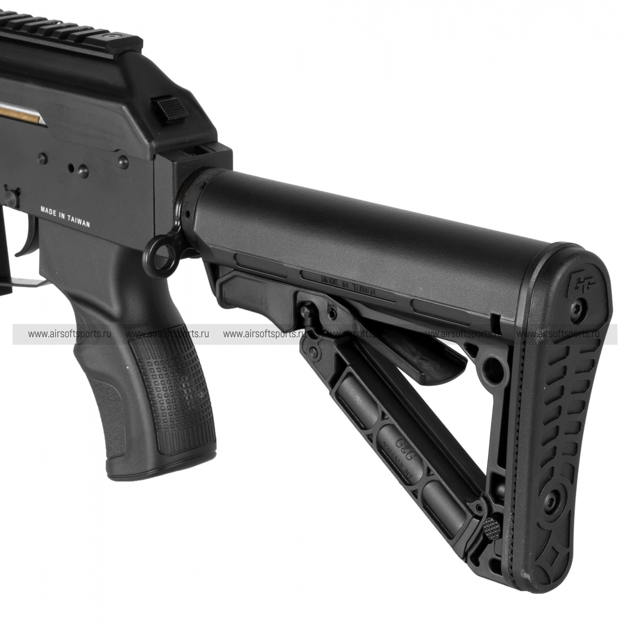 Внутри установлен усиленный металлический гирбокс Ver. 3 (AK-type) с интегрированной электронной платой управления (ETU) и электронным ключом (MOSFET), что обеспечивает быстрый отклик на нажатие спуска и защиту внутренних компонентов.