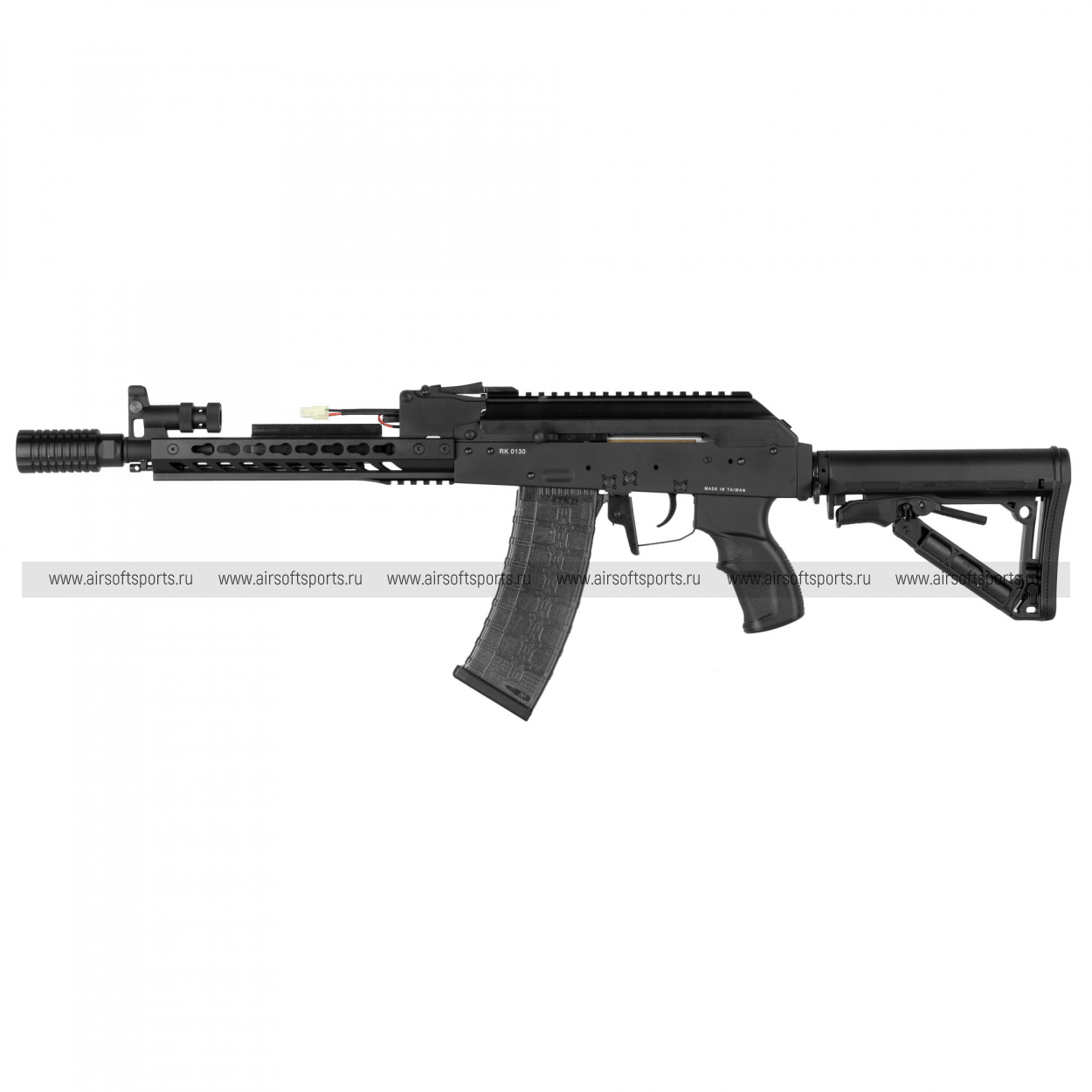 Отсек для аккумулятора находится под крышкой ствольной коробки. Благодаря особенностям конструкции серии RK74, пространство позволяет разместить Li-Po аккумуляторы типа «стик» (колбаса).