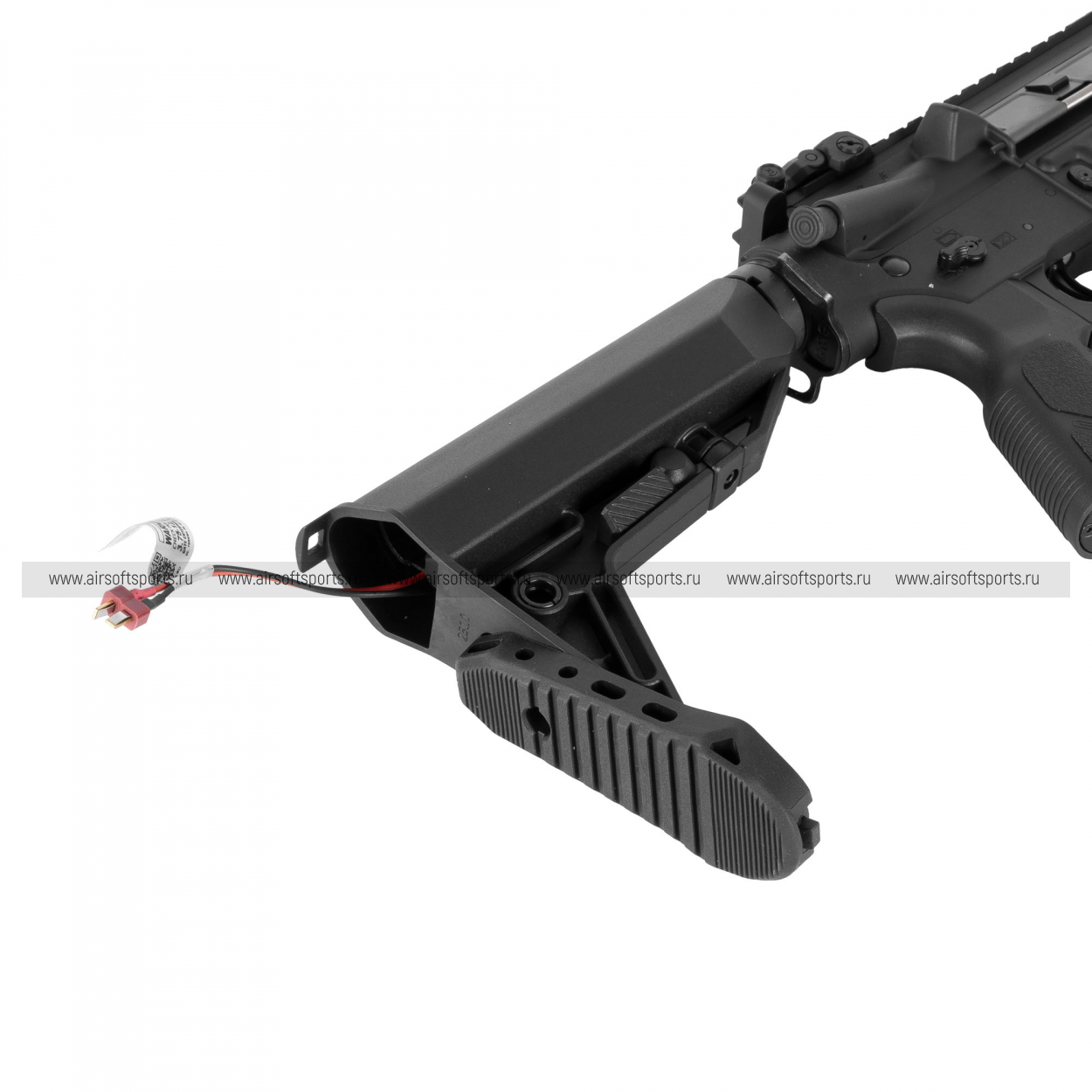Отсек для аккумулятора находится в телескопическом прикладе (GOS-V9). Внутреннее пространство трубы и приклада позволяет разместить двух- или трехлепестковые Li-Po аккумуляторы