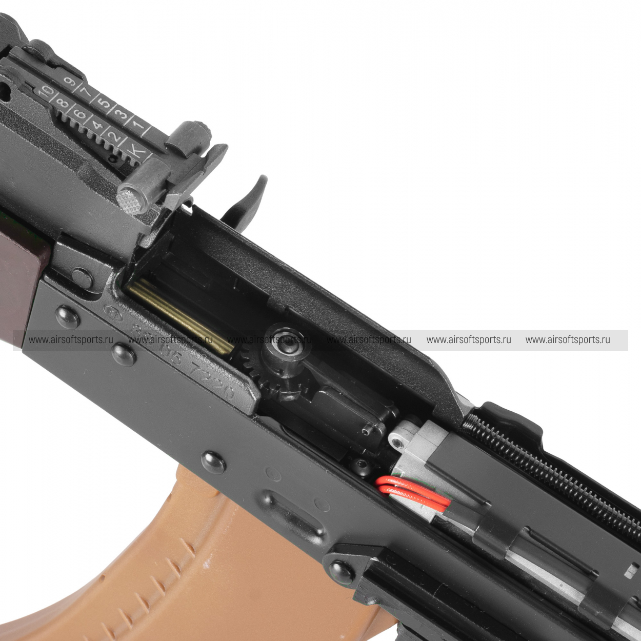 Камера хоп-апа роторная АК-типа, выполнена из высокопрочного пластика. Узел хоп-ап расположен под крышкой ствольной коробки.
