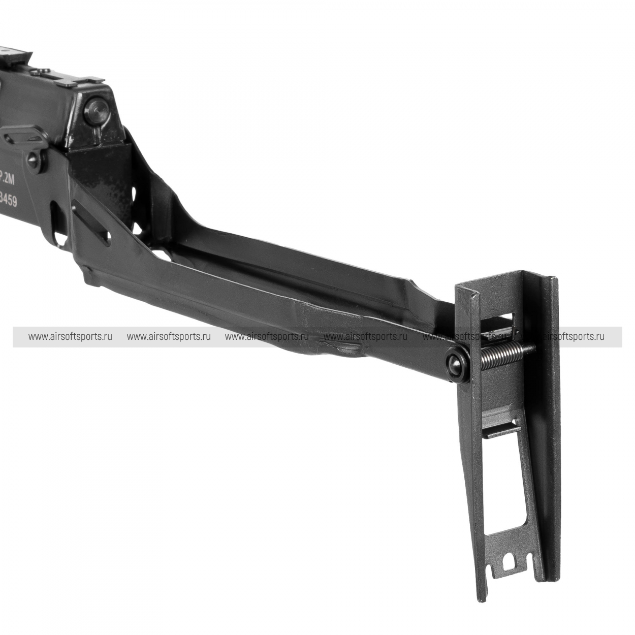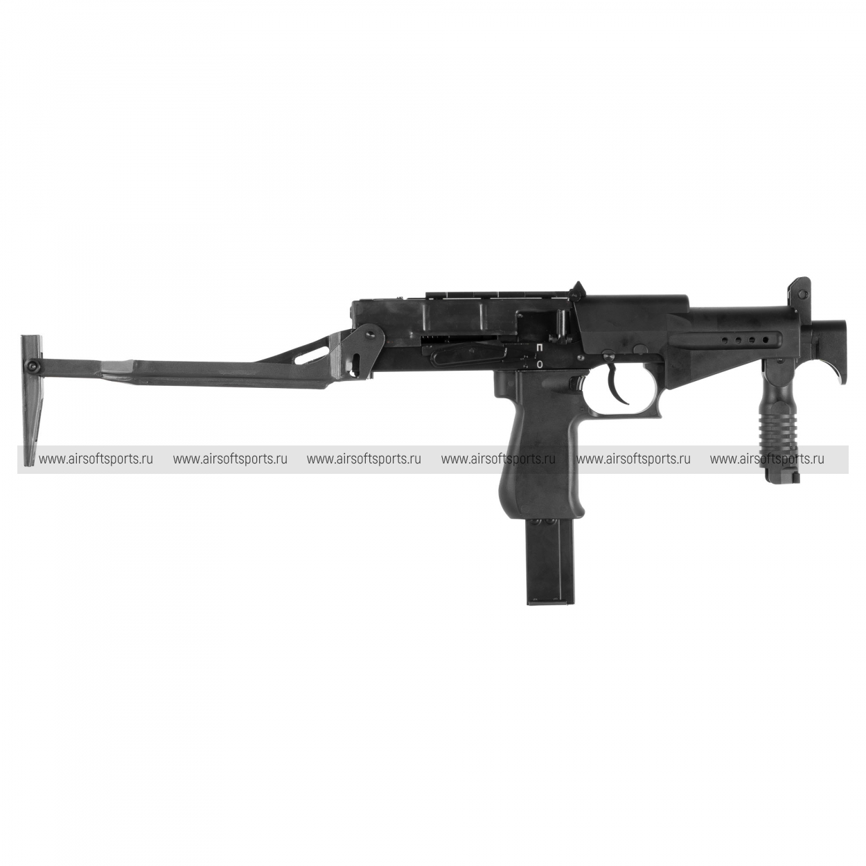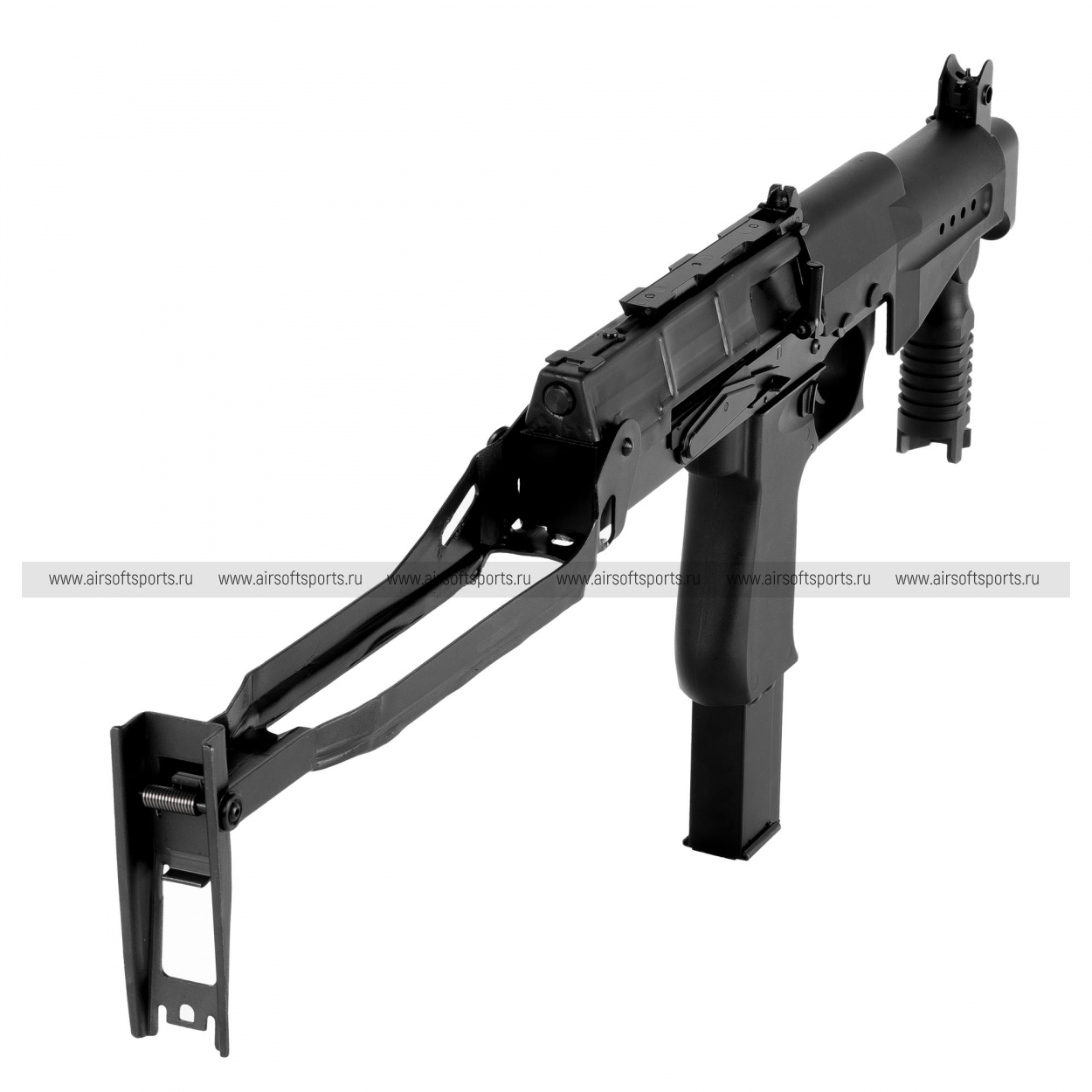 RAPTOR СР-2М GBB выглядит узнаваемо и очень самобытно. Модель отличается плотной, компактной компоновкой, прямолинейным корпусом и характерным силуэтом с магазином, расположенным в пистолетной рукояти. Передняя часть дополнена вертикальной рукоятью, которая усиливает впечатление оружия, созданного для быстрого контроля при стрельбе навскидку. Отдельного внимания заслуживает складной металлический приклад: в разложенном виде он заметно вытягивает силуэт, а в сложенном сохраняет общую компактность конструкции. В целом модель производит впечатление утилитарного, специализированного и очень характерного образца.