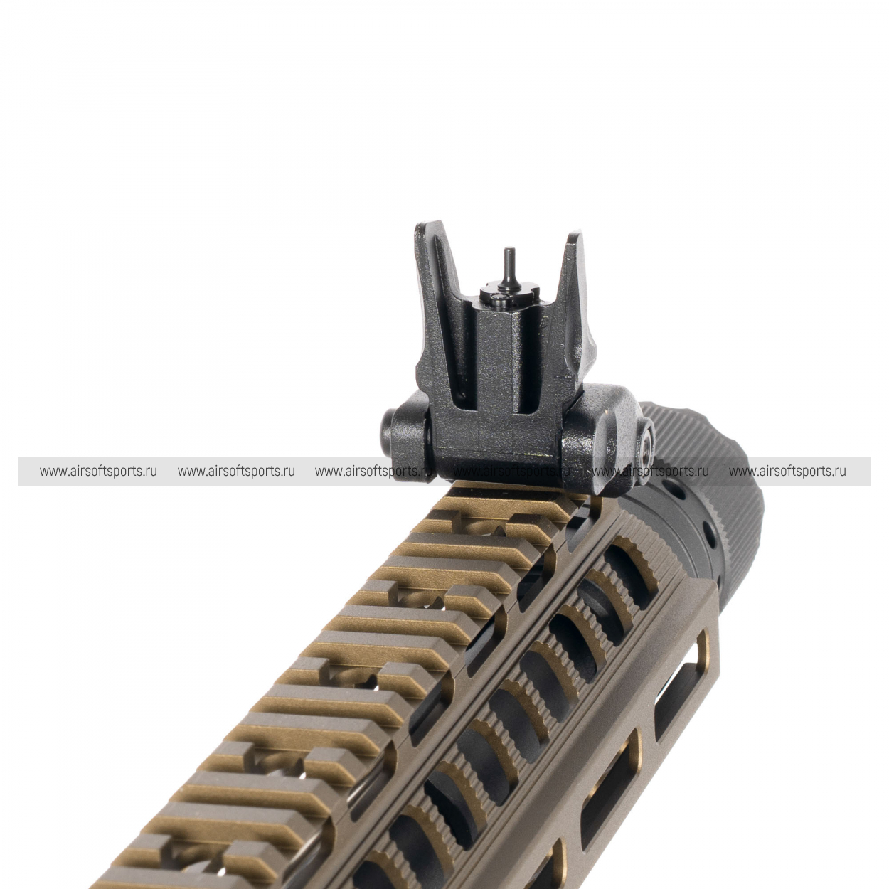 VFC Avalon Saber CQB выглядит компактно, агрессивно и очень современно. У модели короткий, плотный силуэт с укороченным цевьём, который сразу подчеркивает её специализацию на ближнем бою. Верхняя планка по всей длине корпуса делает конструкцию визуально цельной, а развитые интерфейсы на цевье добавляют образу функциональности и тактического характера. Телескопический приклад и лаконичные складные прицельные приспособления завершают внешний вид универсальной штурмовой платформы, которая смотрится технологично, аккуратно и по-спортивному собранно.