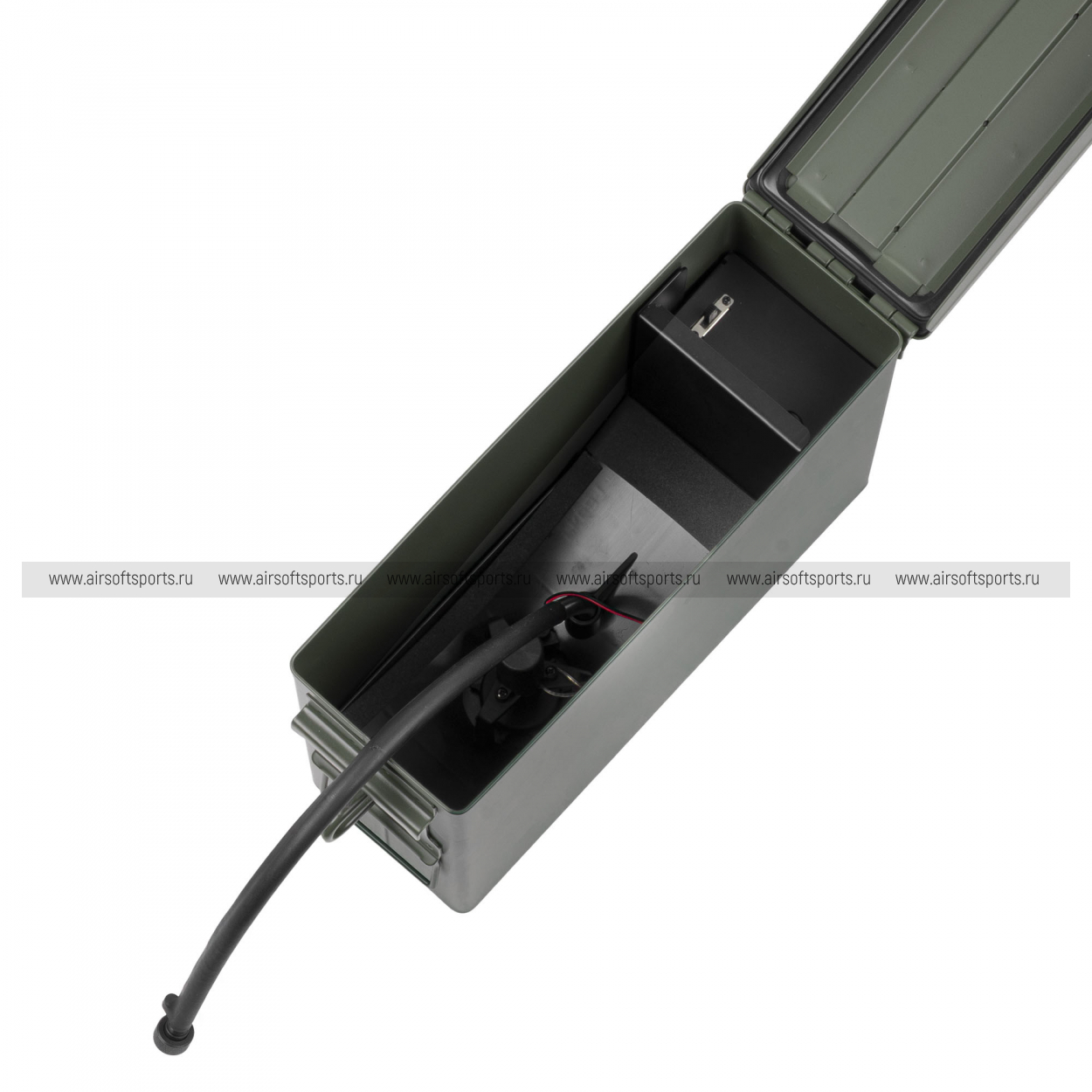 Он оснащен уникальным стальным гирбоксом, созданным под данную модель пулемета.