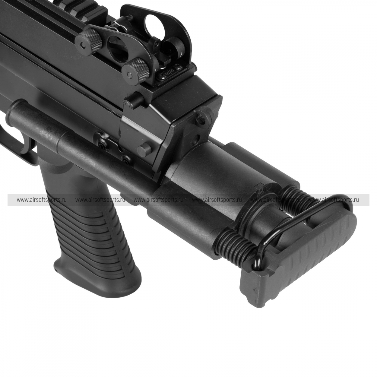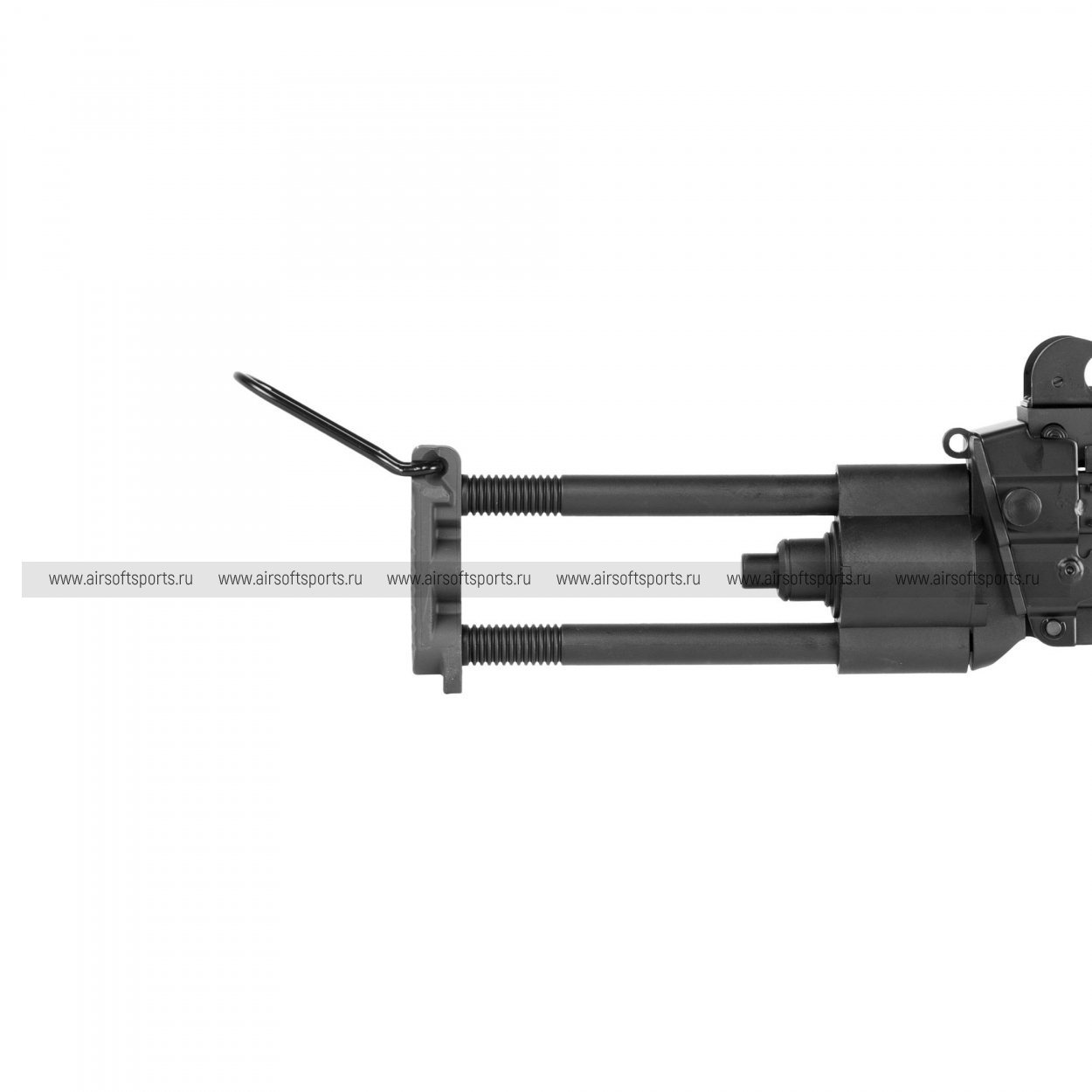 Он оснащен уникальным стальным гирбоксом M249 (Custom) с быстросъёмной пружиной, созданным под данную модель пулемета.