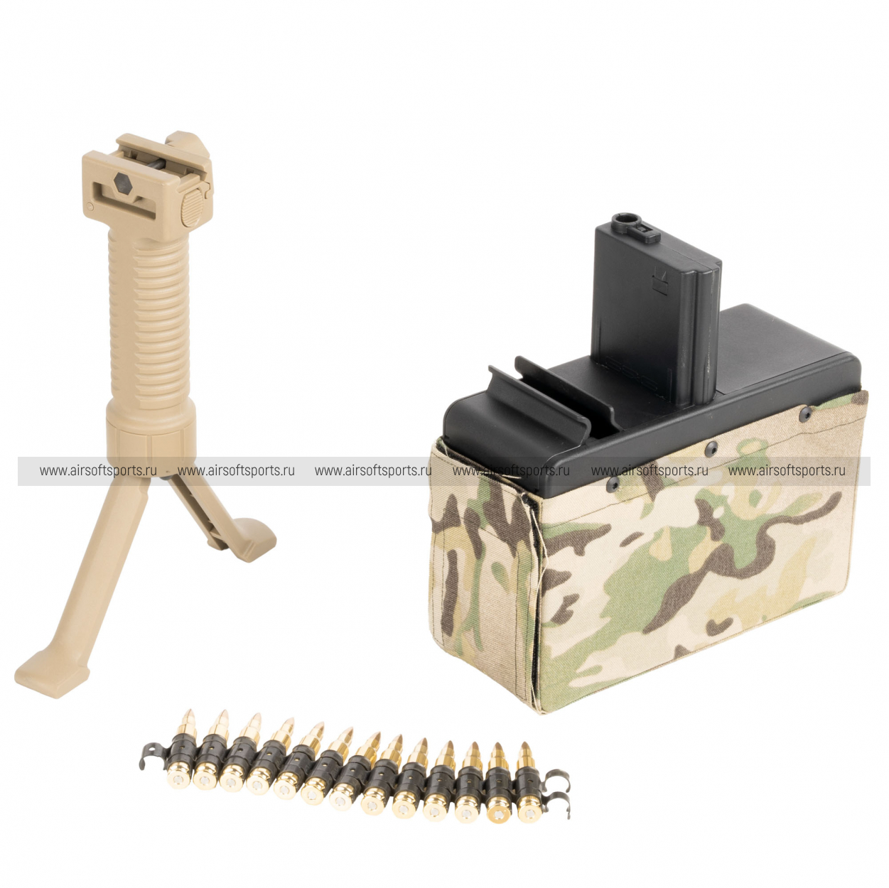 Страйкбольный пулемет работает по принципу AEG, что обеспечивает стабильную огневую мощь как в летний период, так и при низких температурах.