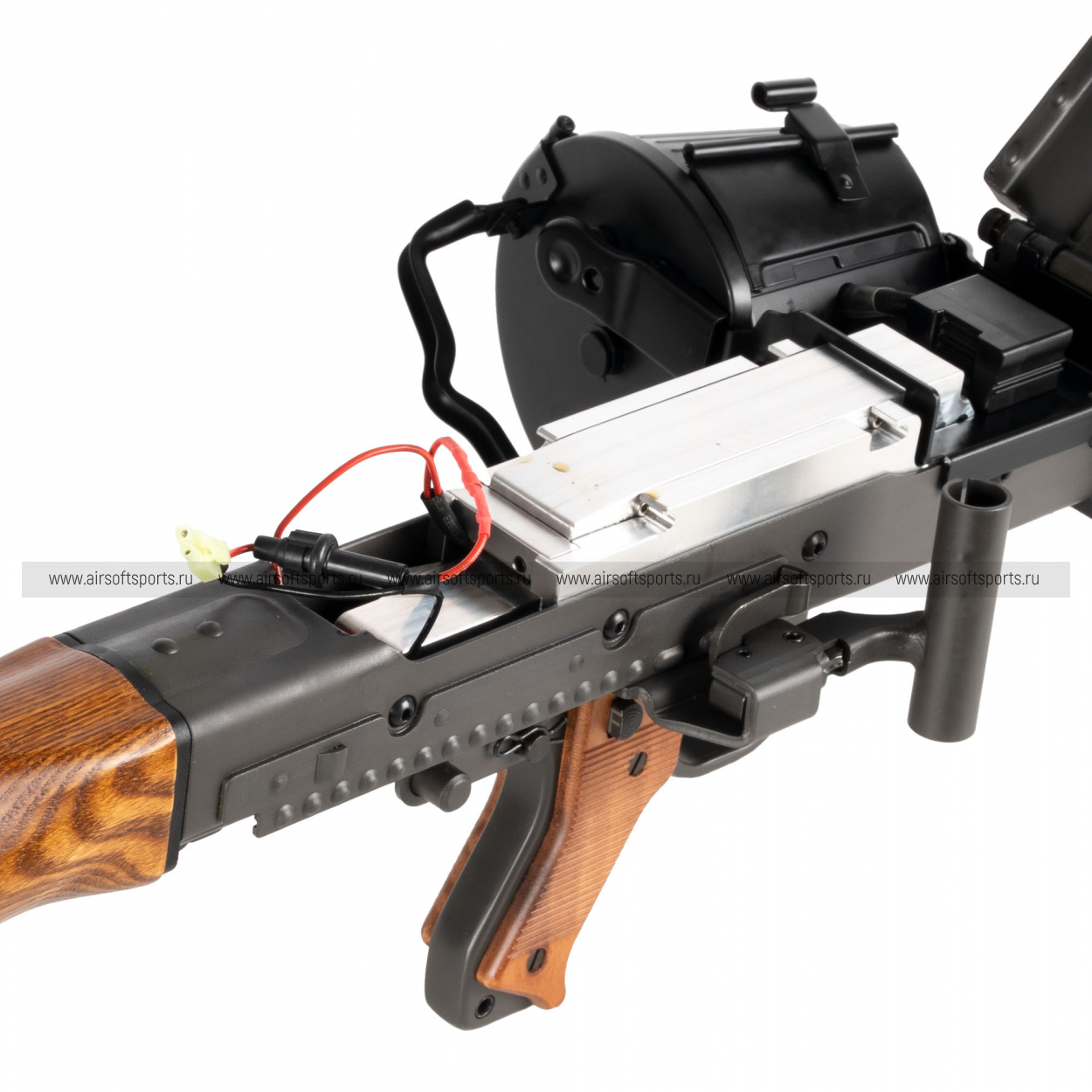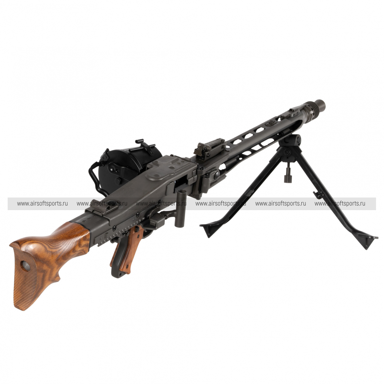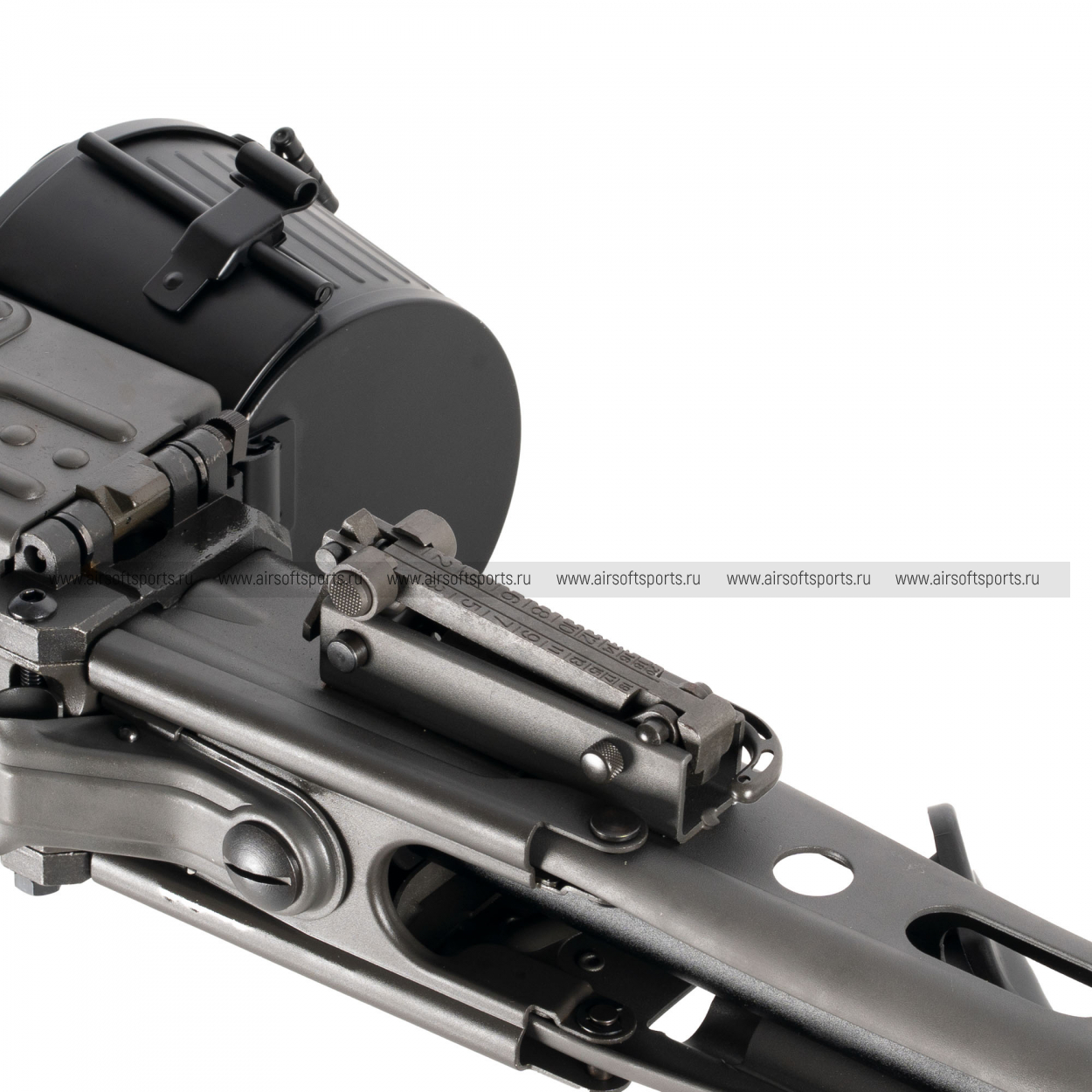 Страйкбольный пулемет работает по принципу AEG, что обеспечивает стабильную огневую поддержку как в летний период, так и при низких температурах. Модель является премиальной репликой, выполненной преимущественно из стали и дерева.