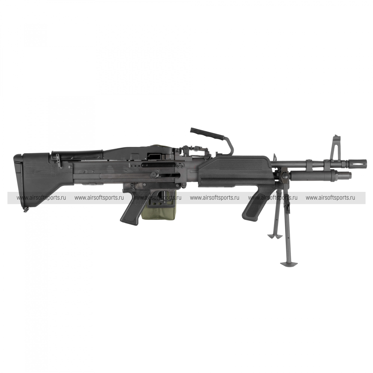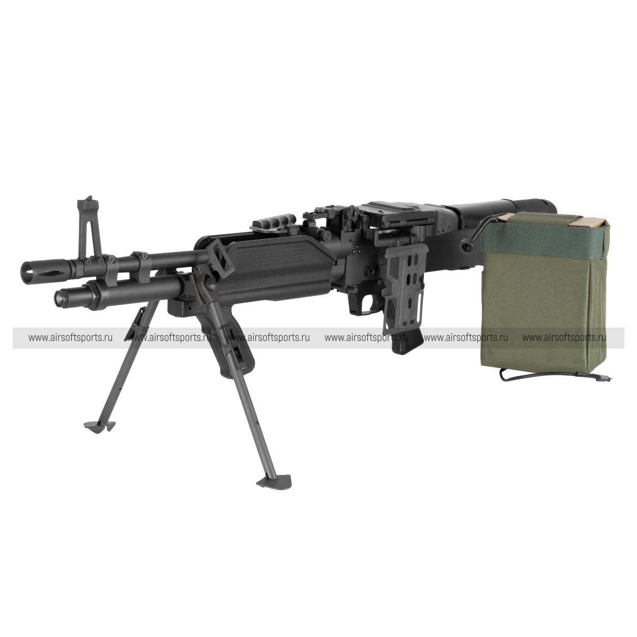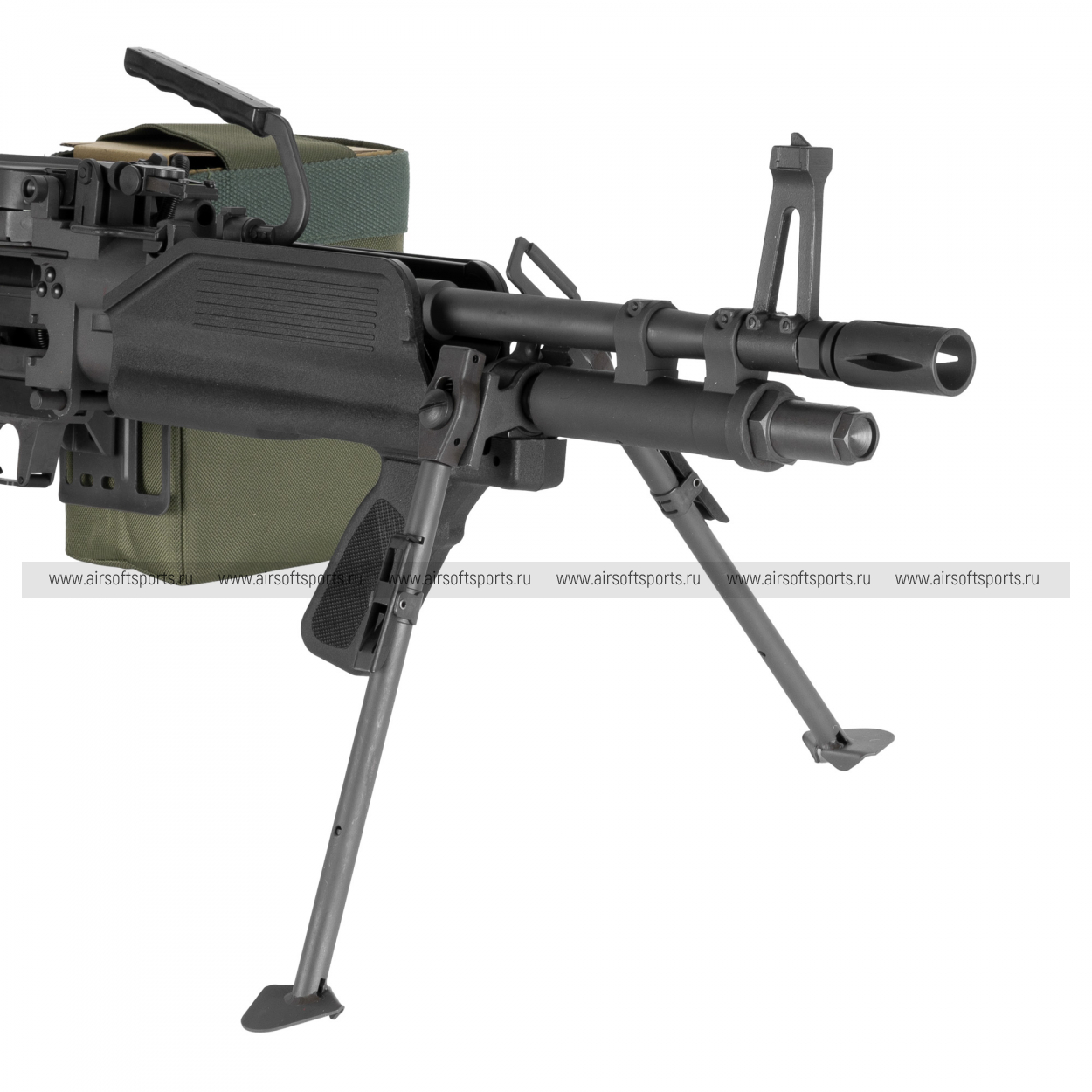 Габаритная металлическая ствольная коробка с верхней крышкой подачи, сразу выдает ленточную платформу. Практичный приклад и пистолетная рукоять без излишеств рассчитаны на уверенную вкладку и контроль. Модель выглядит строго и «по-армейски»: много металла, минимум декора, ощущение прочности и веса, характерное для классических M60.