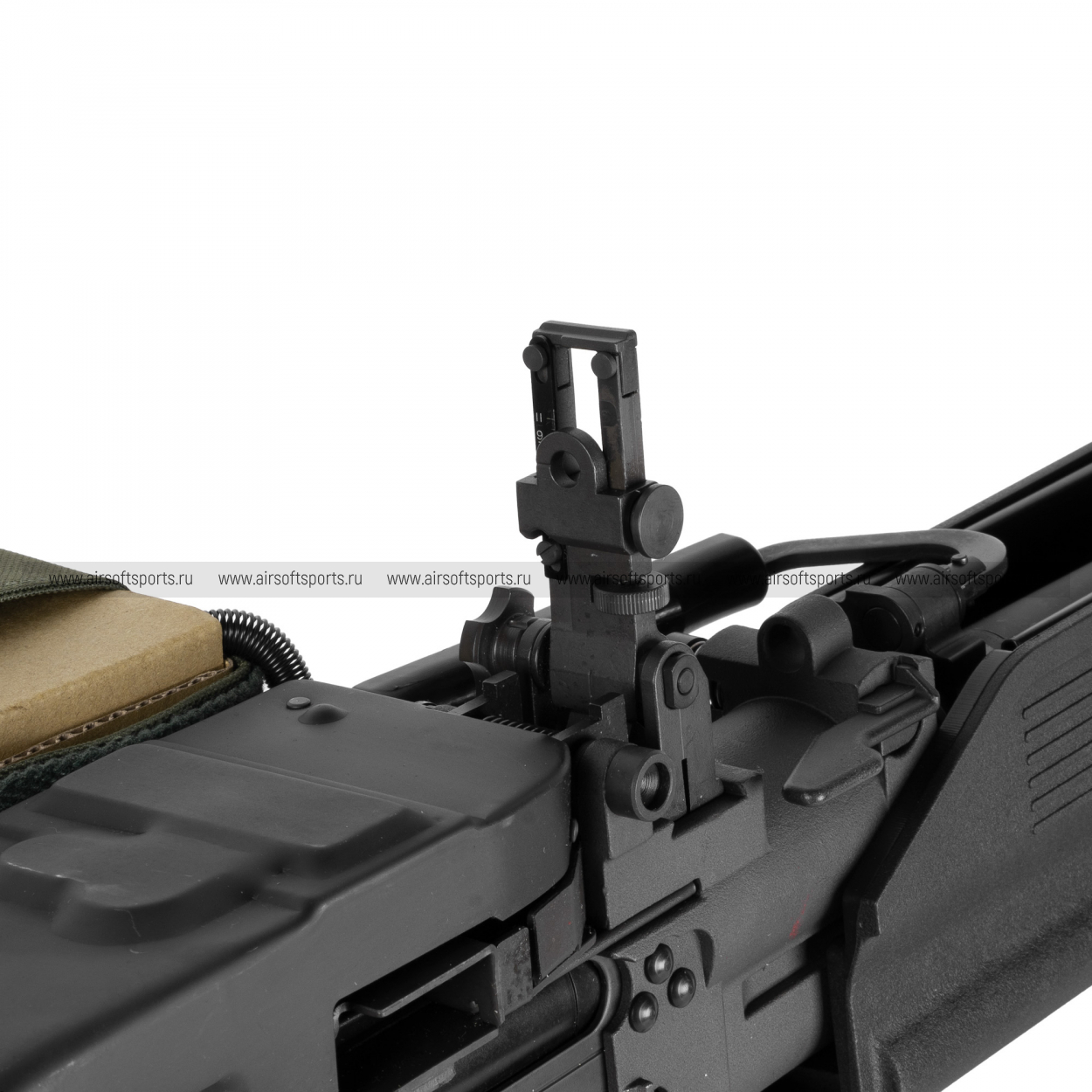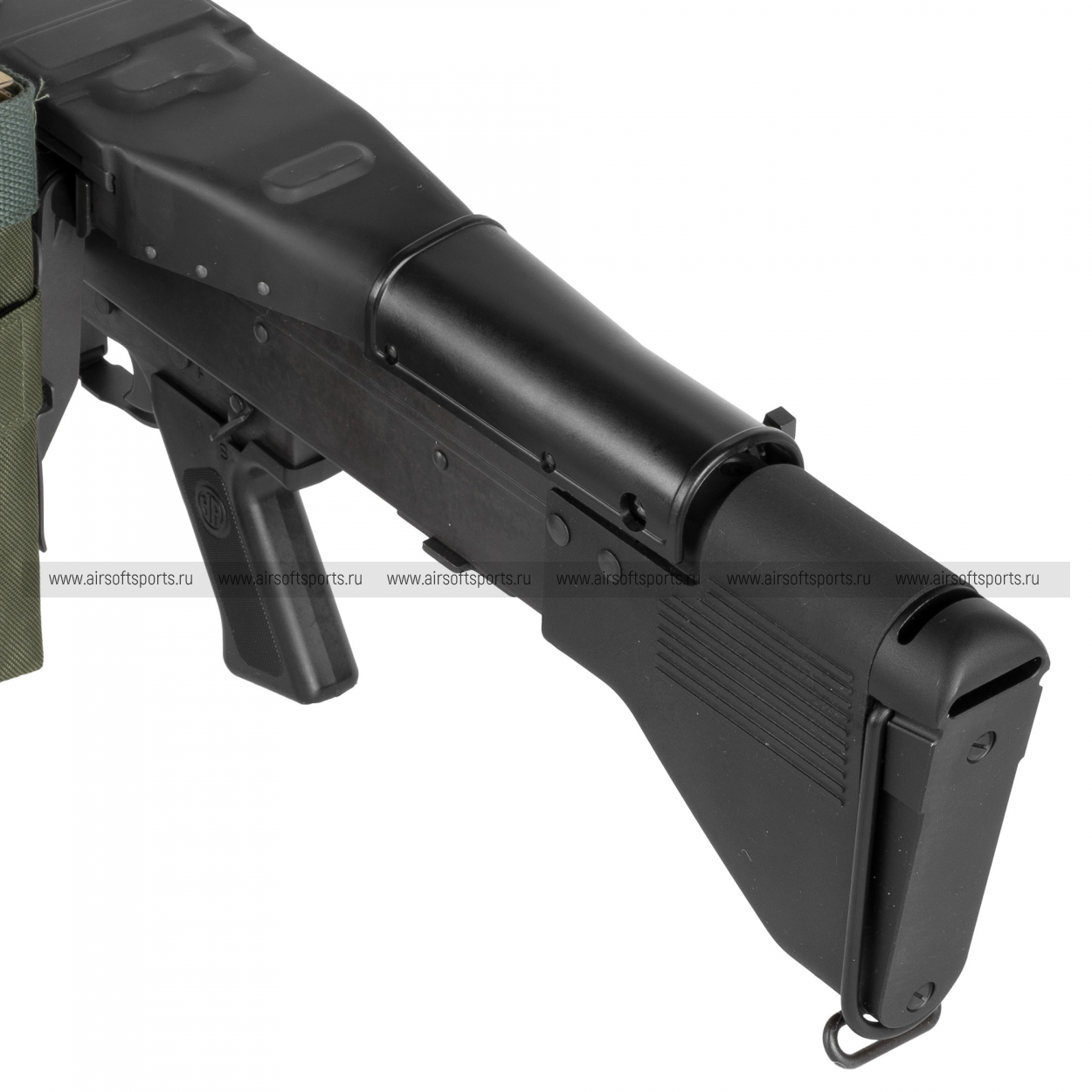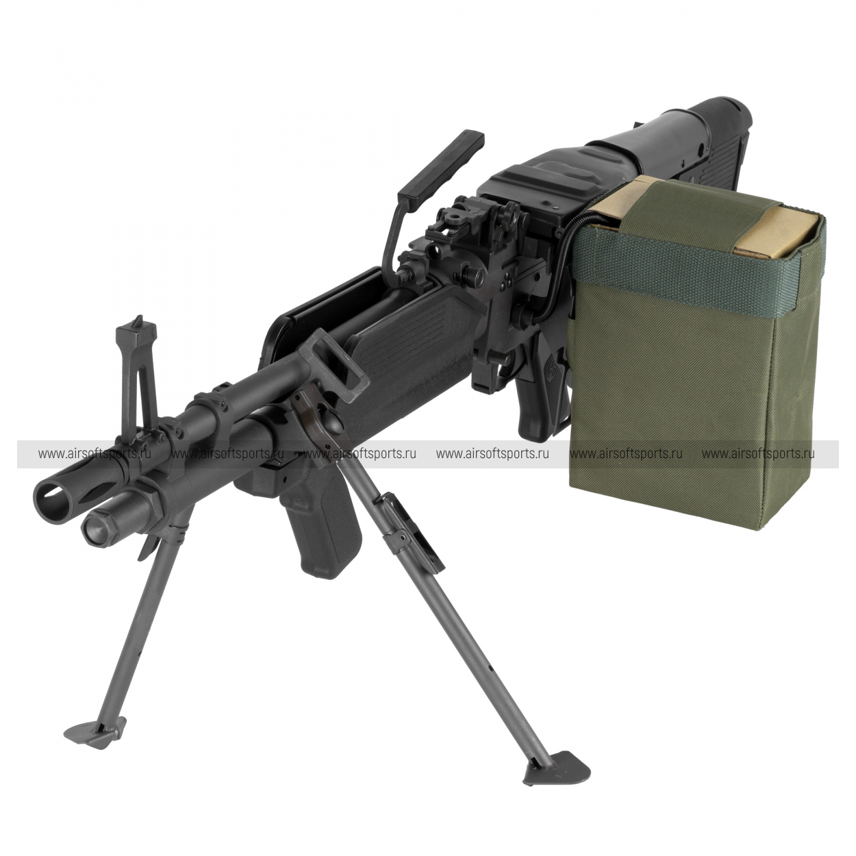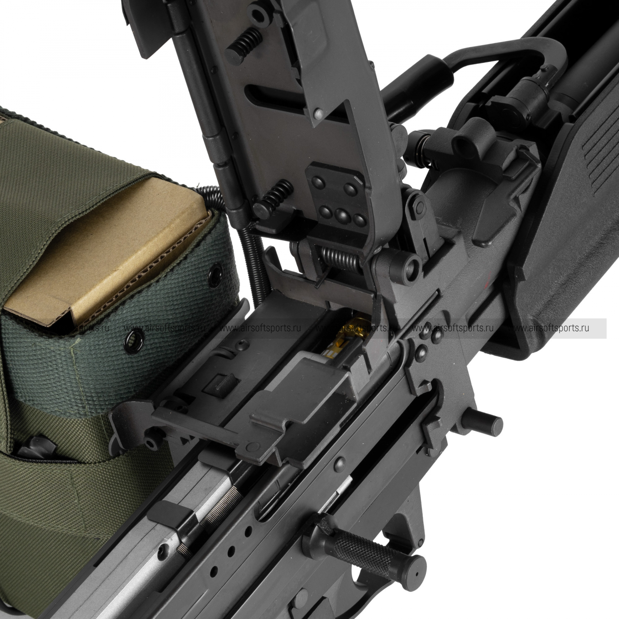 Габаритная металлическая ствольная коробка с верхней крышкой подачи, сразу выдает ленточную платформу. Практичный приклад и пистолетная рукоять без излишеств рассчитаны на уверенную вкладку и контроль. Модель выглядит строго и «по-армейски»: много металла, минимум декора, ощущение прочности и веса, характерное для классических M60.
