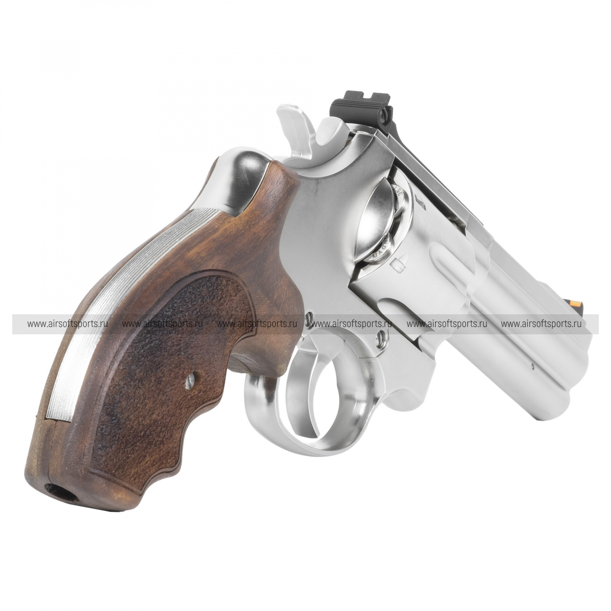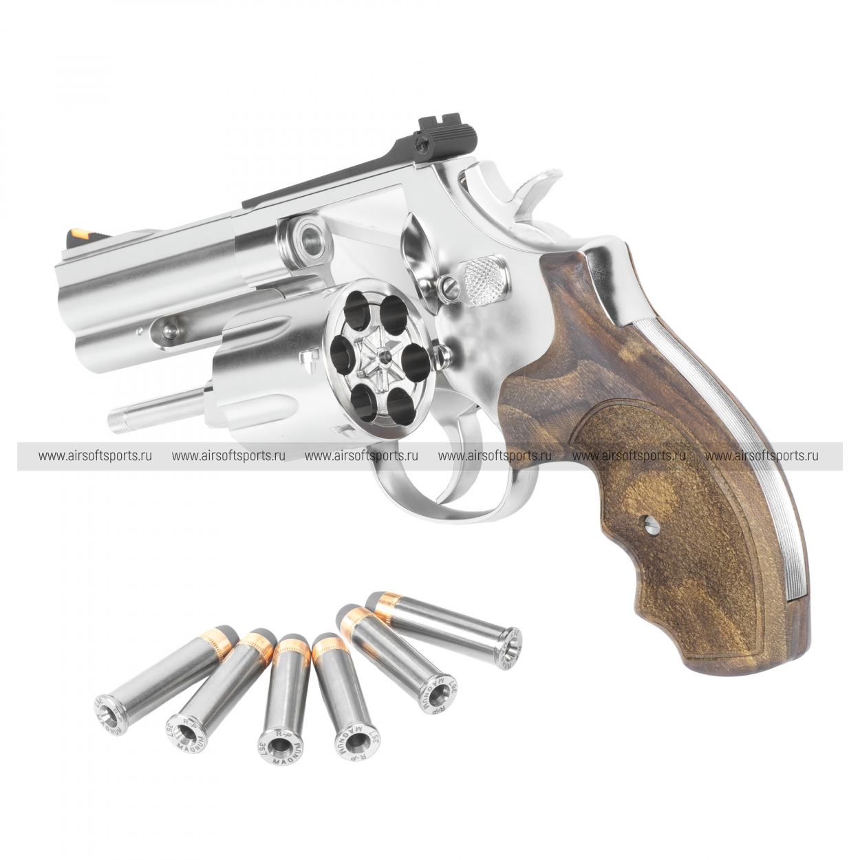 ARES S&W 686 3.5 inch CO2 Revolver Silver оснащён шестизарядным барабаном, в который вставляются специальные гильзы для имитации настоящей перезарядки. Эргономичная рукоятка обеспечивает удобный хват, а компактные размеры делают этот револьвер идеальным для тренировок, коллекционирования и страйкбольных игр в CQB-условиях. Хромированное покрытие придаёт модели стильный и эффектный внешний вид. Отдельная «вишенка» — рукояти из натурального дерева с текстурой. В этой ценовой категории это редкость, а насечка обеспечивает надёжный и удобный хват.